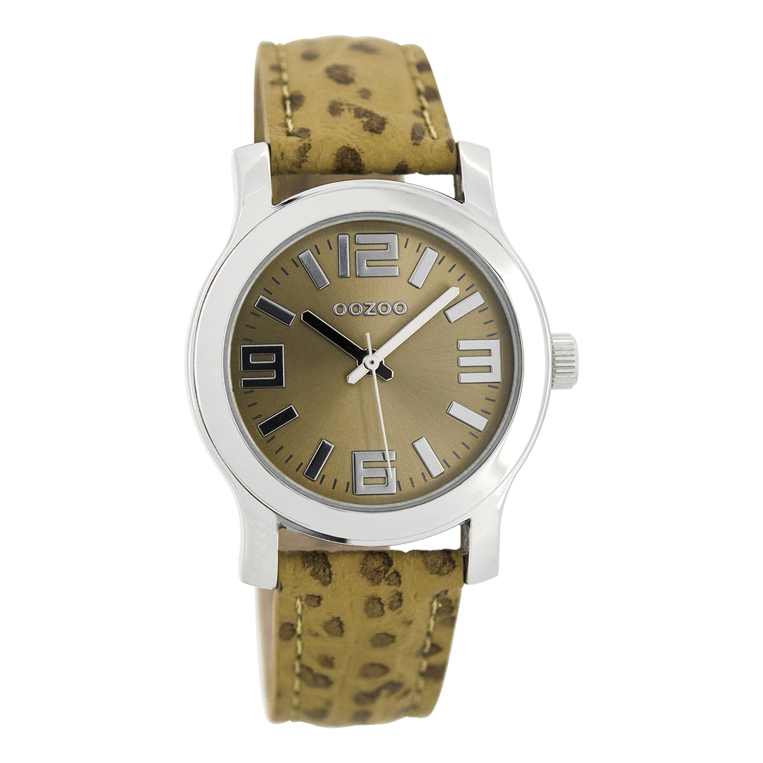 Silver coloured OOZOO watch with sand leather strap - C7125