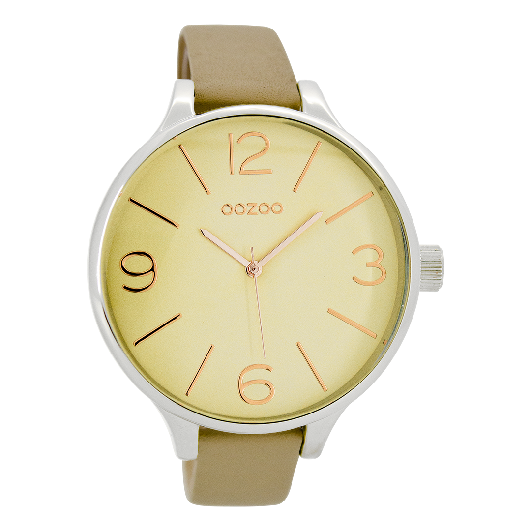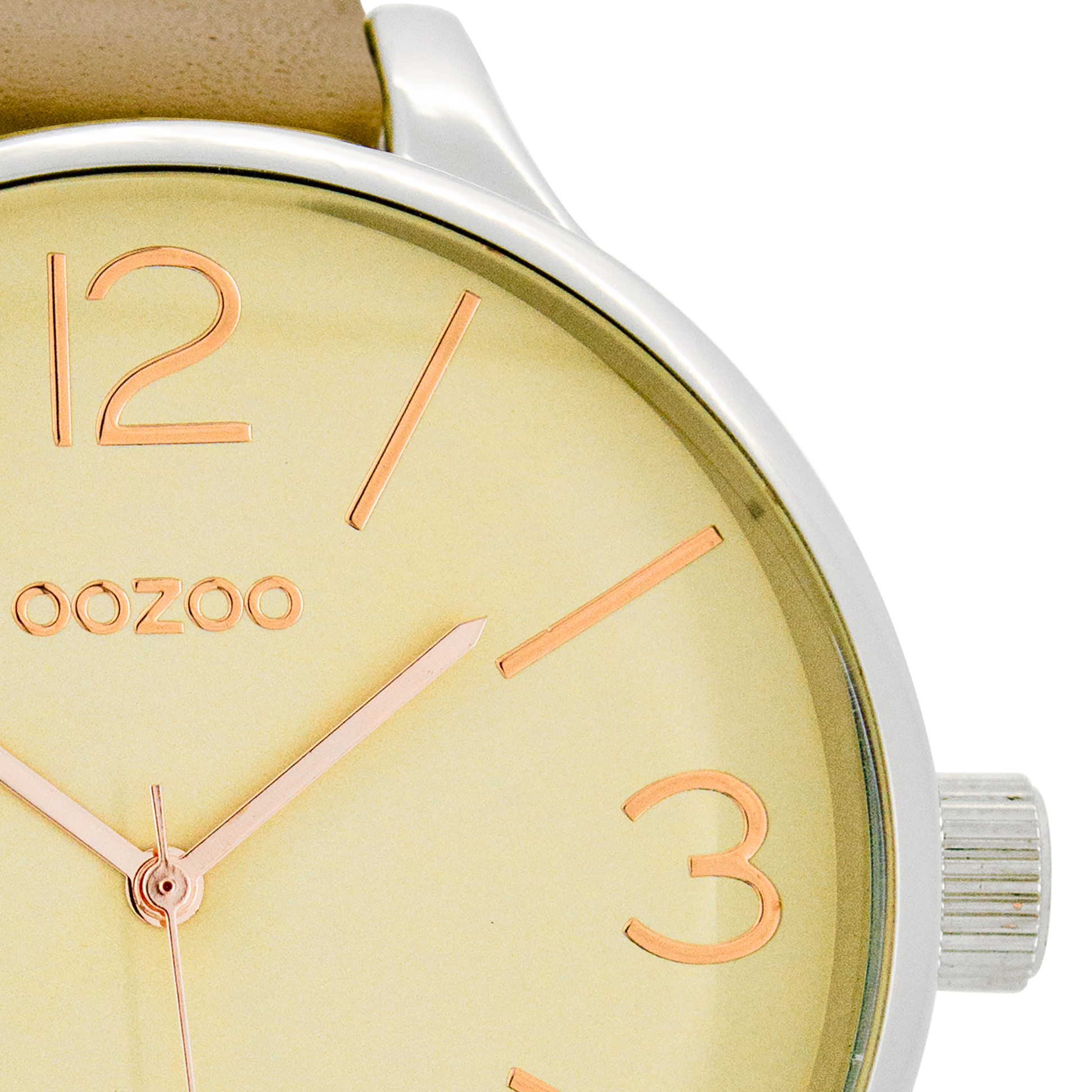 Silver coloured OOZOO watch with sand leather strap - C7160