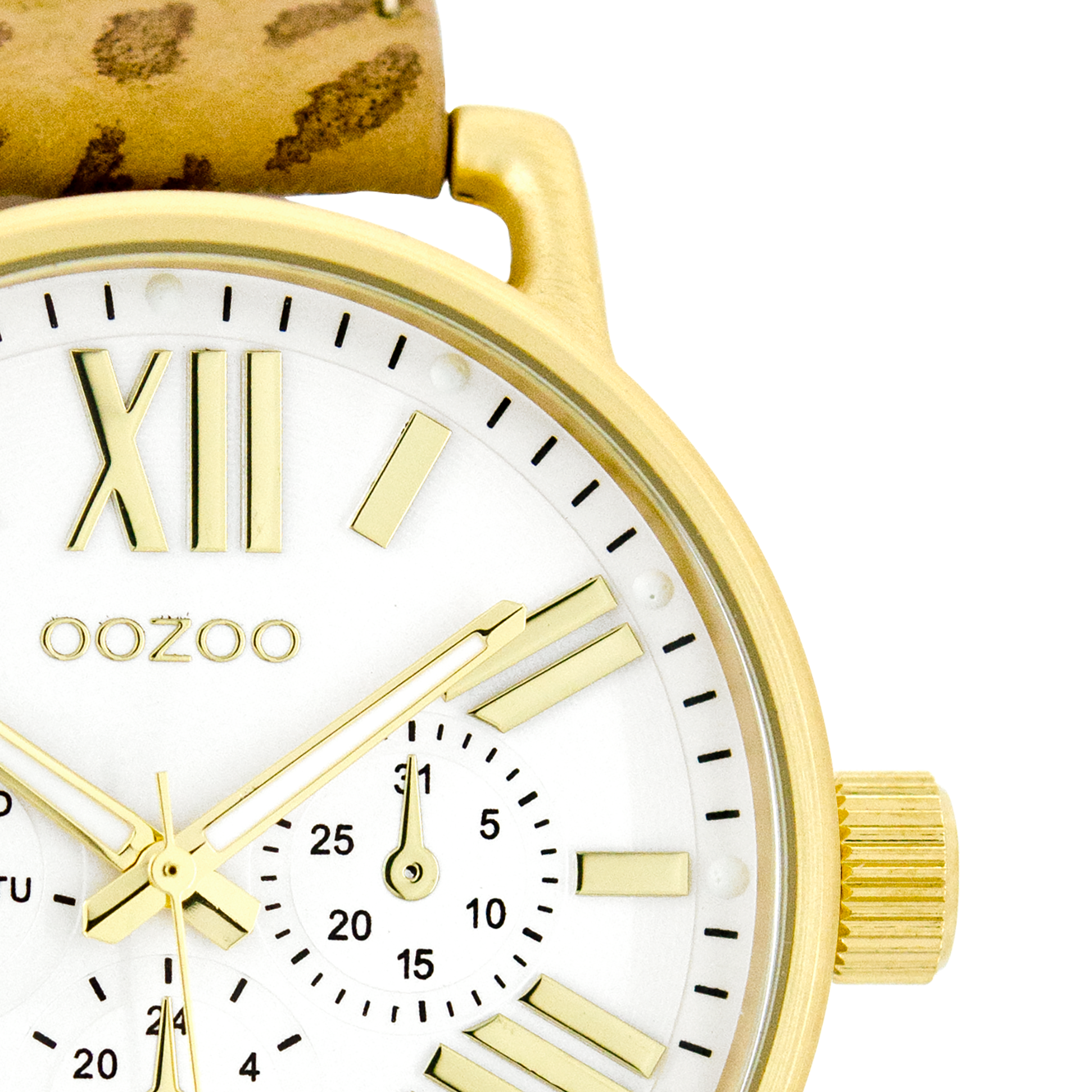 Gold coloured OOZOO watch with camel leather strap - C7186