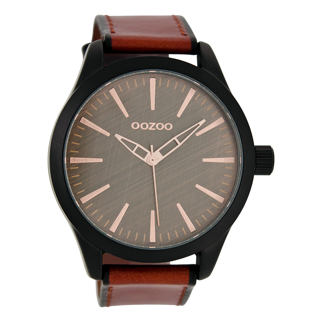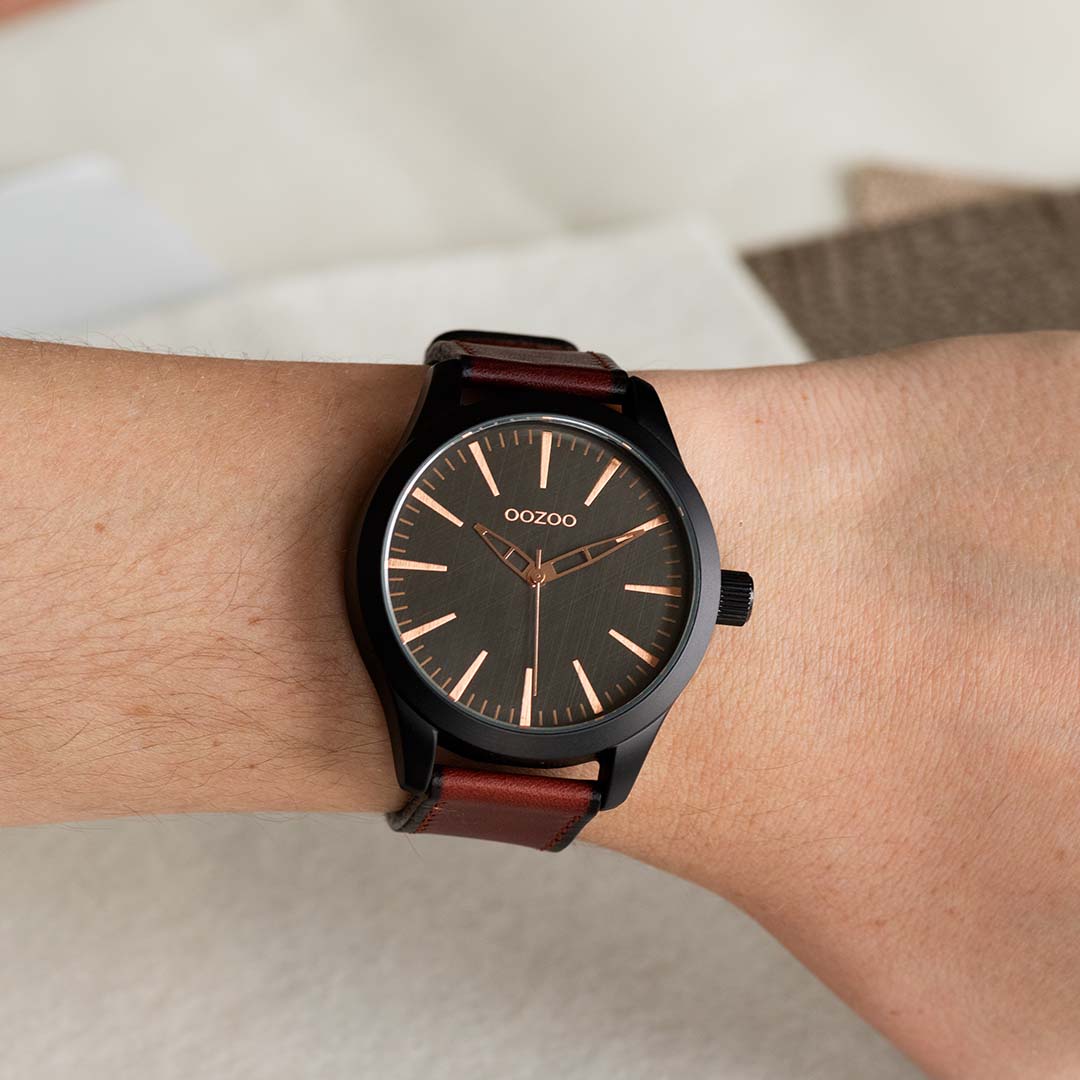 Black OOZOO watch with red brown leather strap - C7427