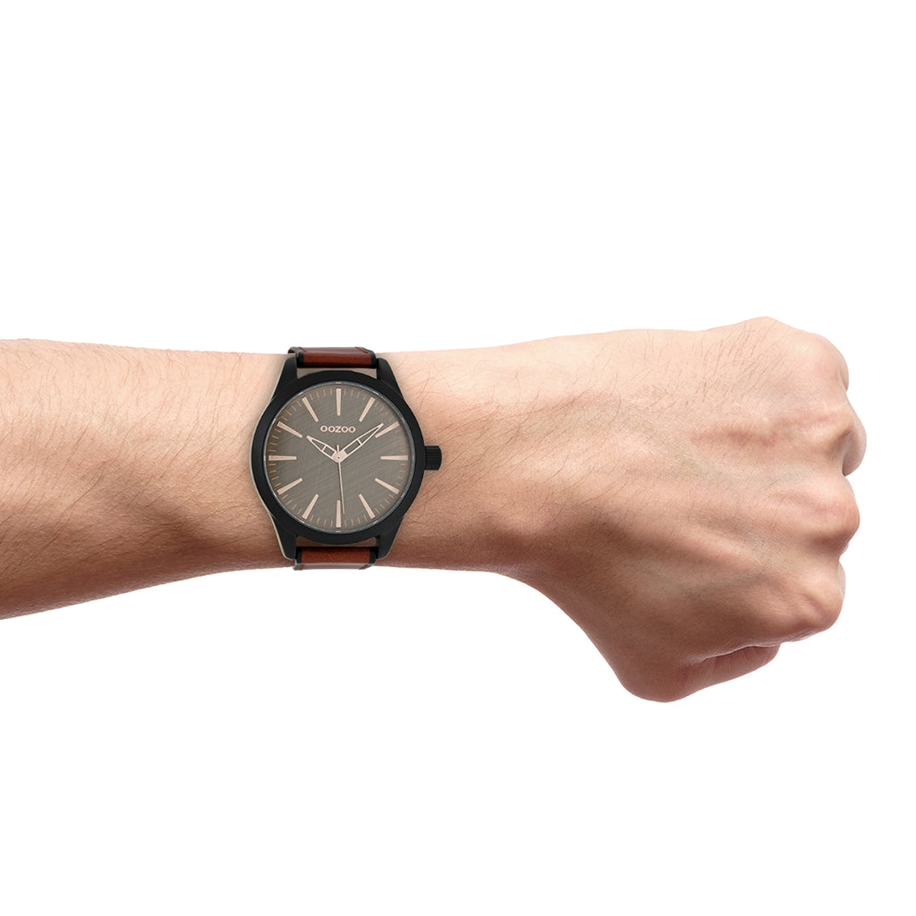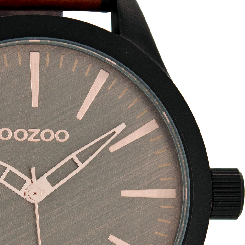 Stand out with this beautiful round gents design from the trendy OOZOO Timepieces collection. The C7427 has a stitched red brown leather strap and 46 mm black matte watch case. You are making quite the fashion statement with this brown scratched dial, rose gold coloured stripes digits and matching hands. This essential watch for your wardrobe has a mineral glass, stainless steel backplate and is nickel safe. This watch has a 2 Japanese movement and is covered by a 2 year warranty (see section 3 of our Refund, shipping & warranty policy).