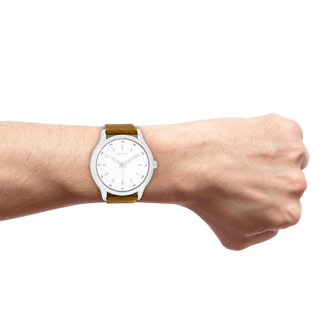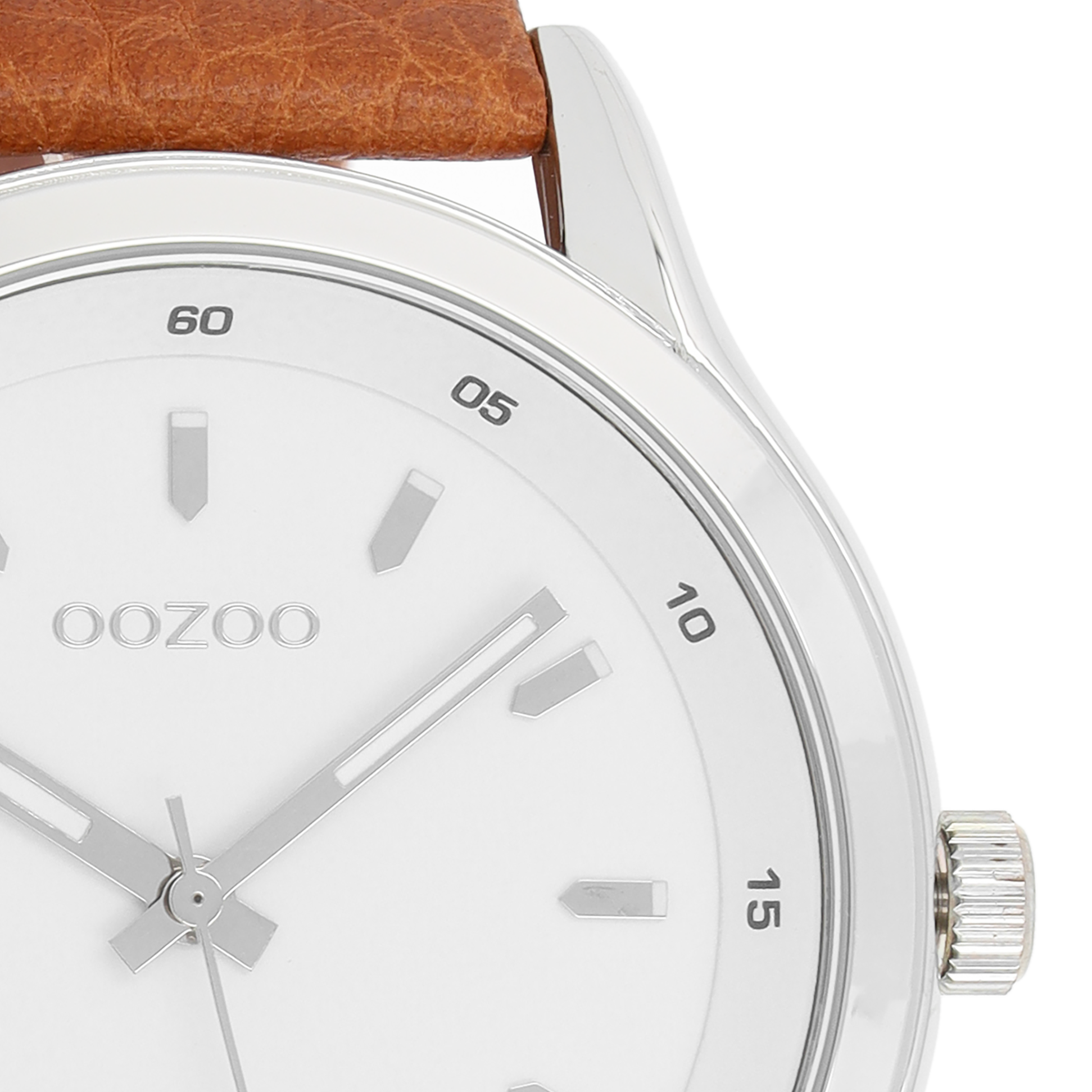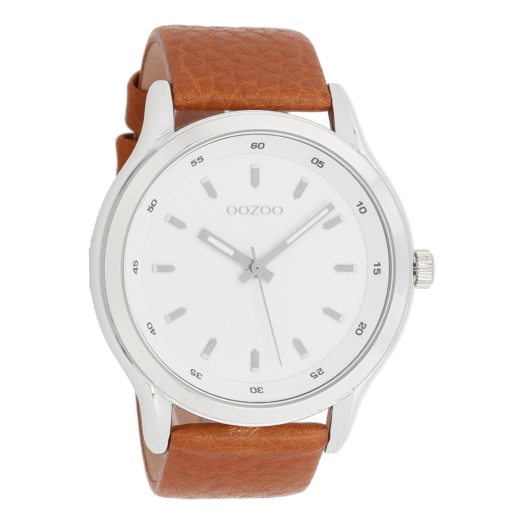 Silver coloured OOZOO watch with cognac leather strap - C7430