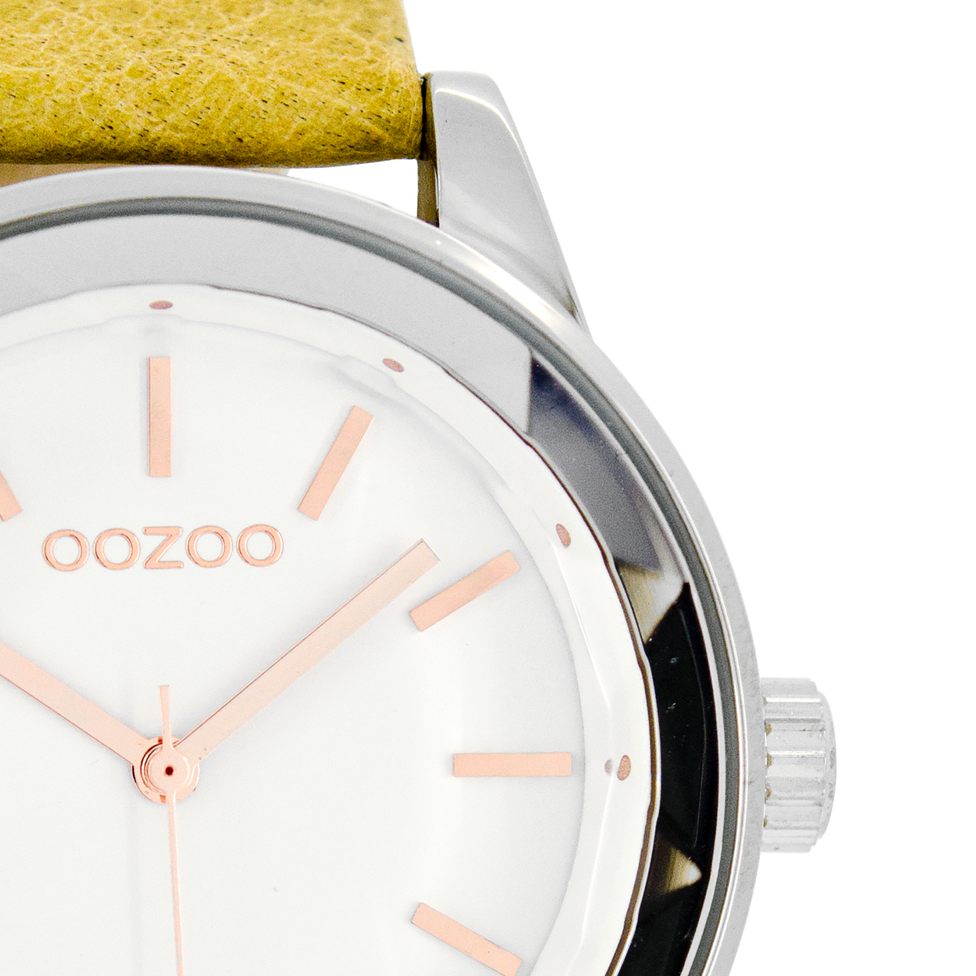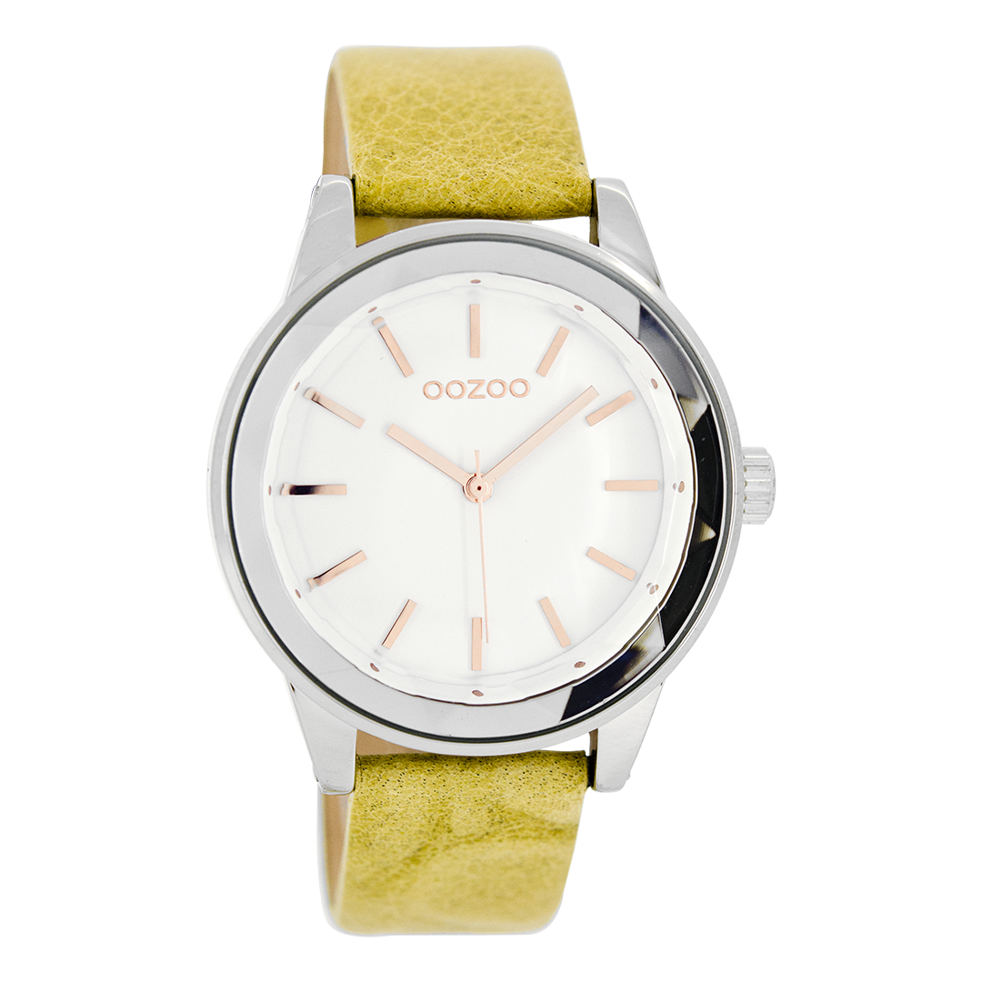 Silver coloured OOZOO watch with sand leather strap - C7530