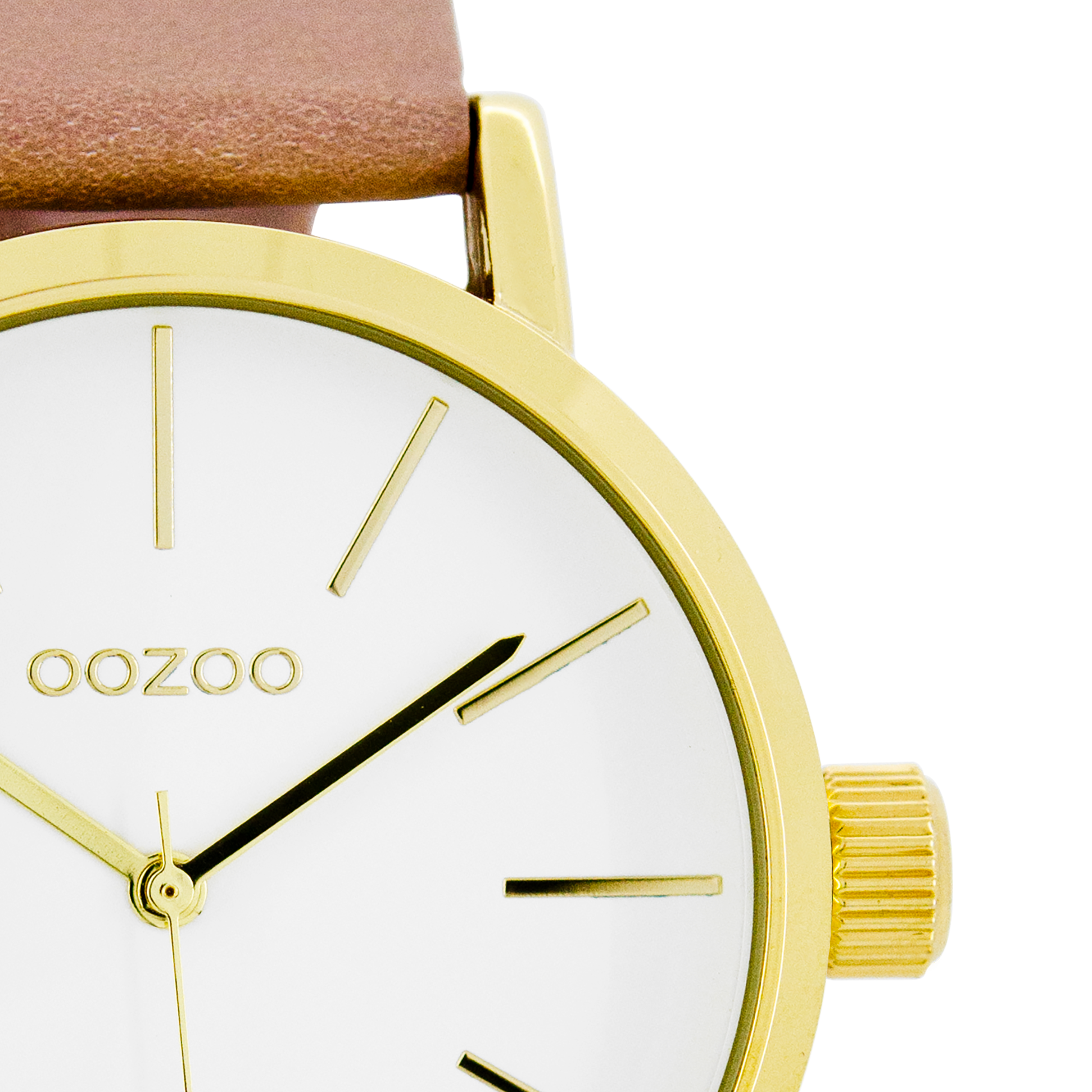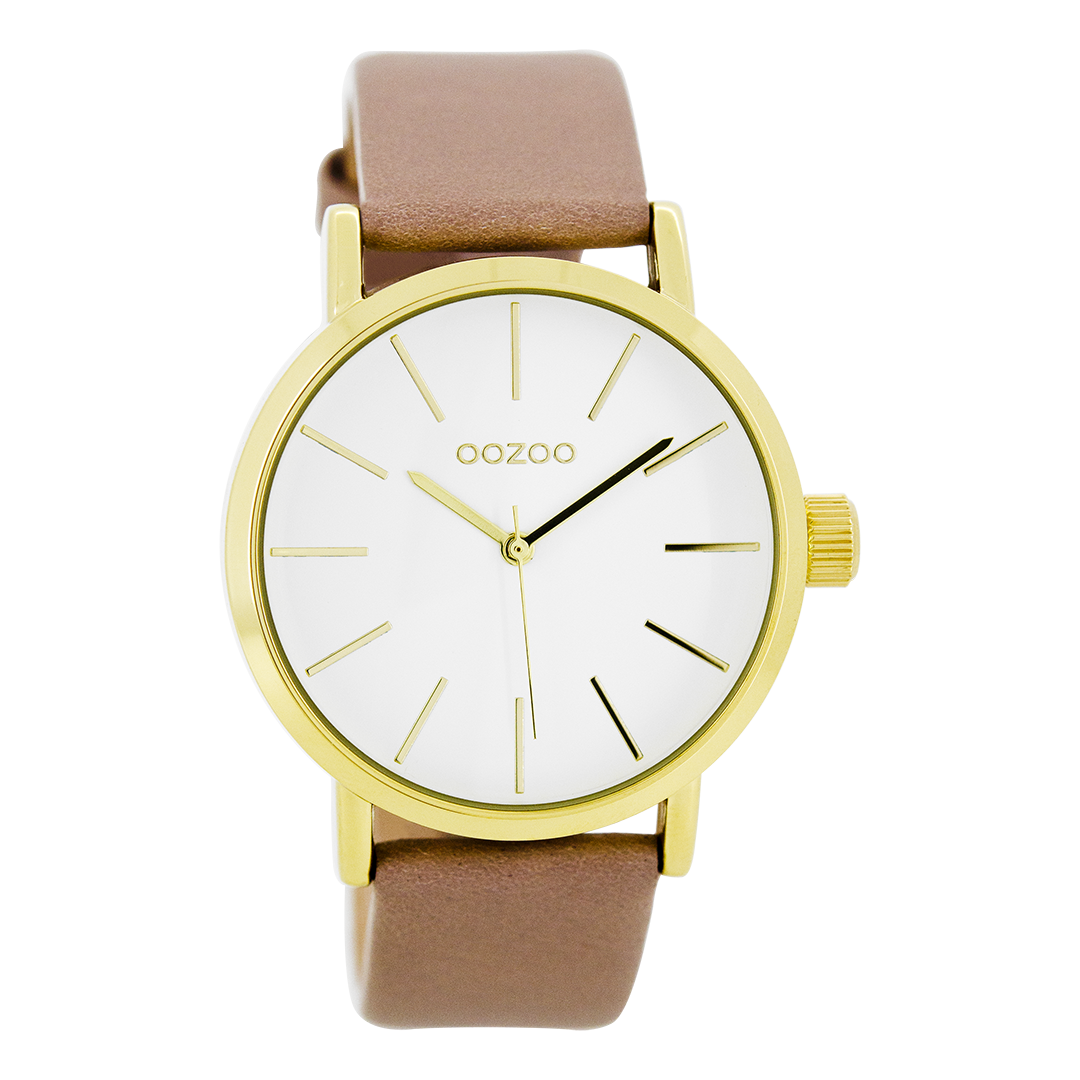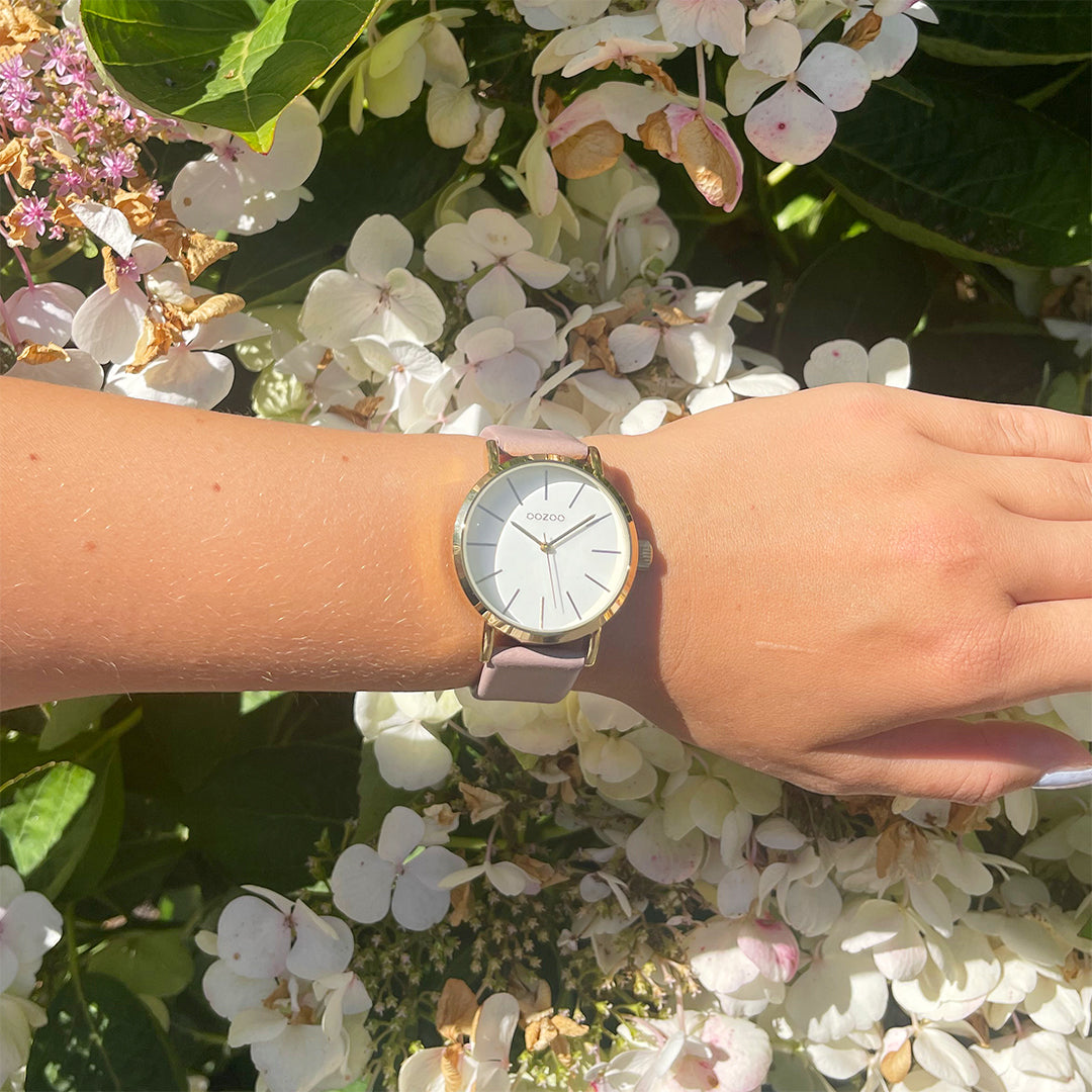 Gold coloured OOZOO watch with pink grey leather strap - C7680