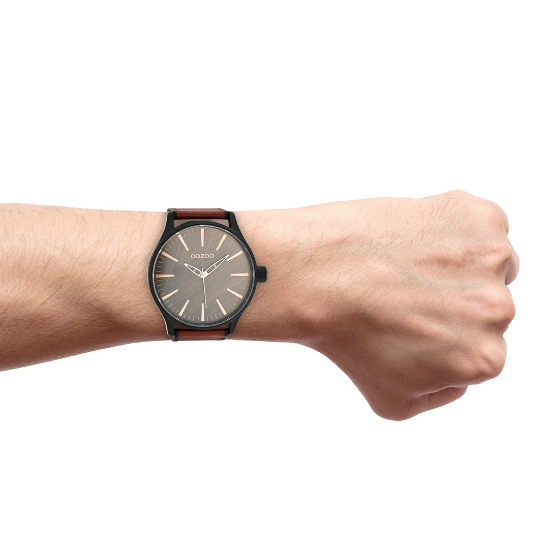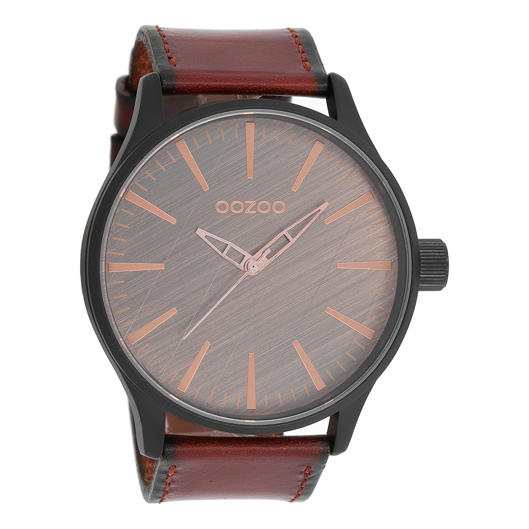 Stand out with this beautiful round gents design from the trendy OOZOO Timepieces collection. The C7862 has a stitched red brown leather strap and 50 mm black matte watch case. You are making quite the fashion statement with this brown scratched dial, rose gold coloured stripes digits and matching hands. This essential watch for your wardrobe has a mineral glass, stainless steel backplate and is nickel safe. This watch has a 2 Japanese movement and is covered by a 2 year warranty (see section 3 of our Refund, shipping & warranty policy).