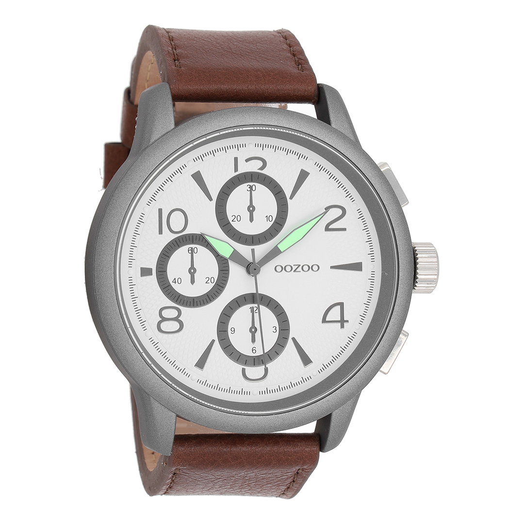 Titanium OOZOO watch with dark brown leather strap - C7875