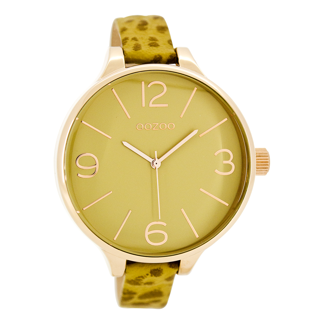 Stand out with this beautiful round ladies design from the trendy OOZOO Timepieces collection. The C7967 has a leopard print camel leather strap and 45 mm rose gold coloured metal watch case. You are making quite the fashion statement with this camel dial, rose gold coloured stripes and numbers digits and matching hands. This essential watch for your wardrobe has a mineral glass, stainless steel backplate and is nickel safe. This watch has a 2 Japanese movement and is covered by a 2 year warranty (see section 3 of our Refund, shipping & warranty policy).