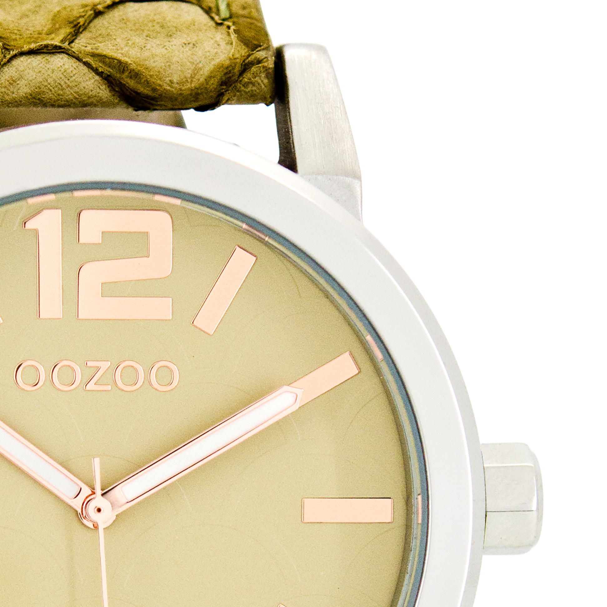 Silver coloured OOZOO watch with sand/light green leather strap - C7995