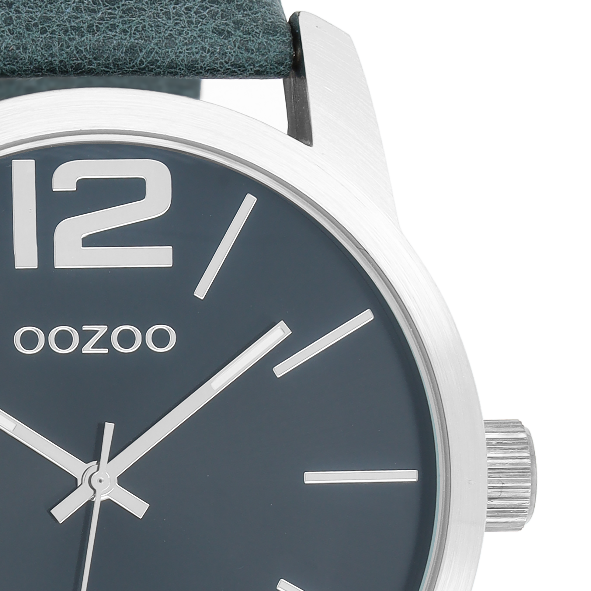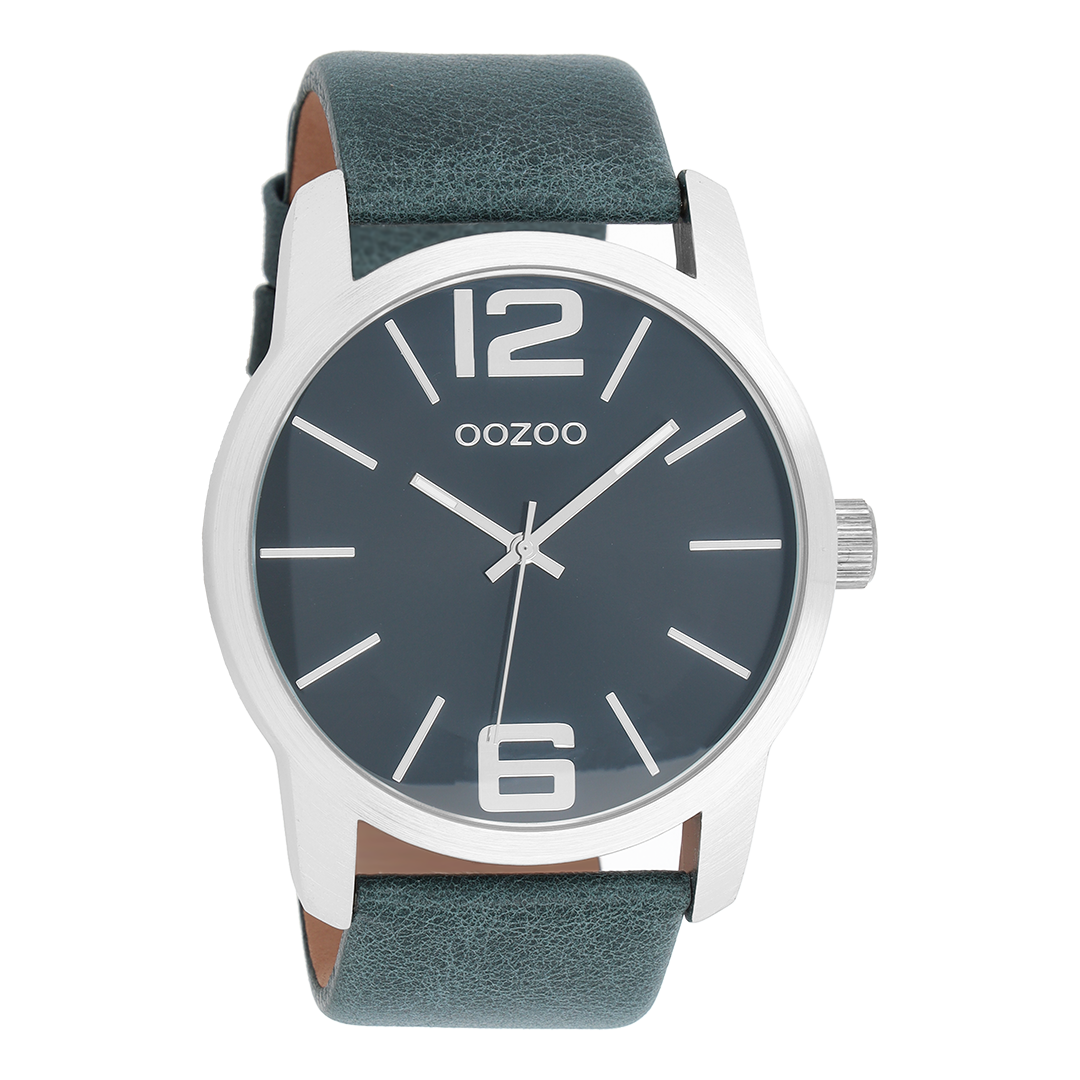 Silver coloured OOZOO watch with blue leather strap - C8034