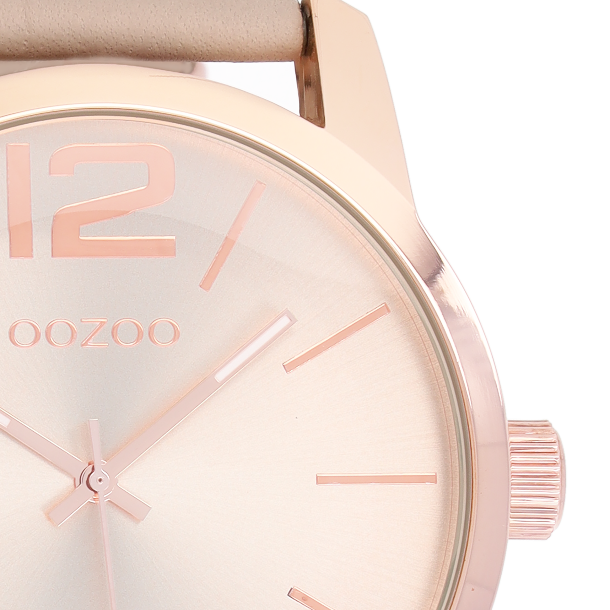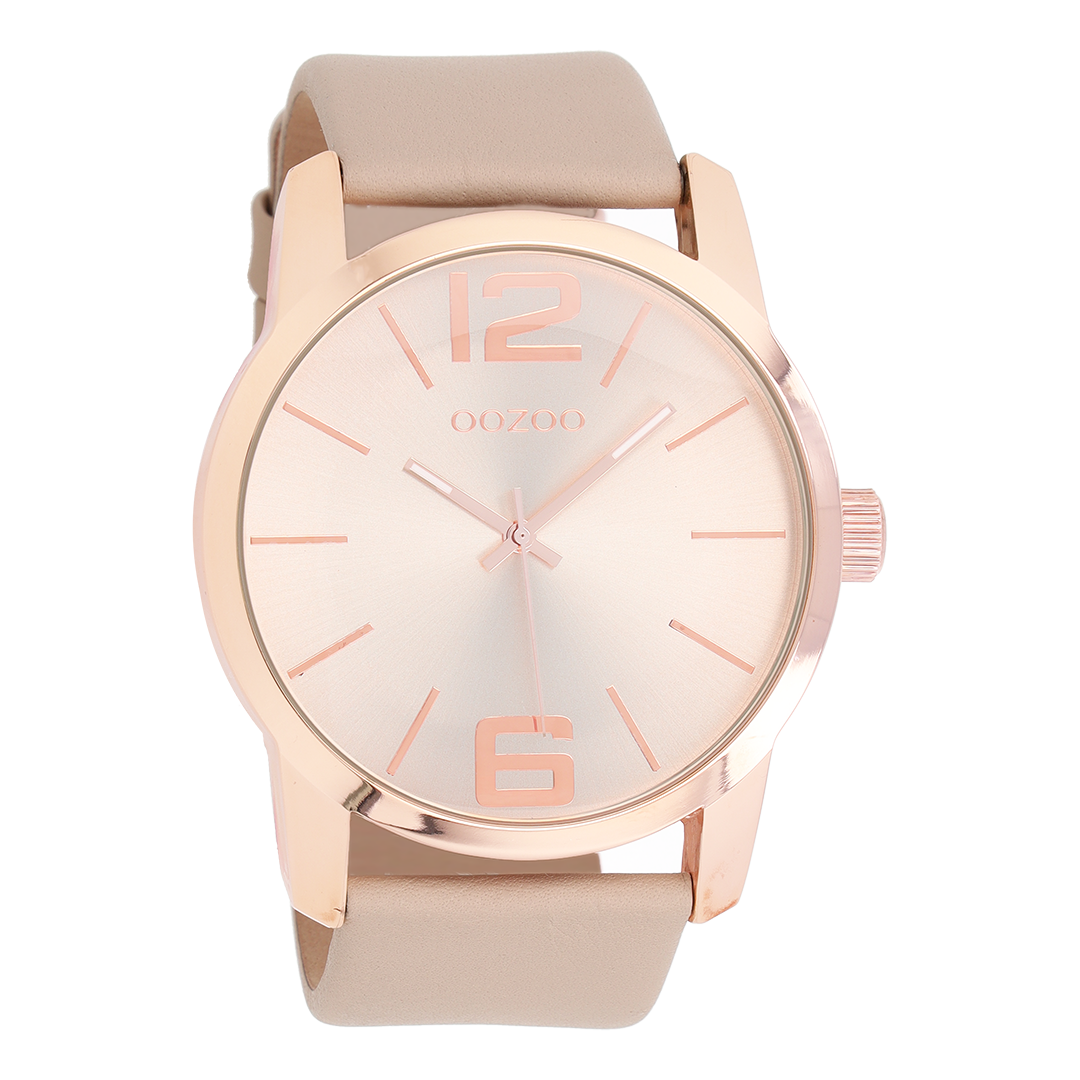 Rose gold coloured OOZOO watch with beige leather strap - C8035
