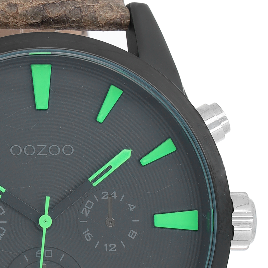 Stand out with this beautiful round gents design from the trendy OOZOO Timepieces collection. The C8202 has a grey leather strap and 50 mm black metal watch case. You are making quite the fashion statement with this black dial, fluo green stripes digits and black hands. This essential watch for your wardrobe has a mineral glass, stainless steel backplate and is nickel safe. This watch has a 2 Japanese movement and is covered by a 2 year warranty (see section 3 of our Refund, shipping & warranty policy).