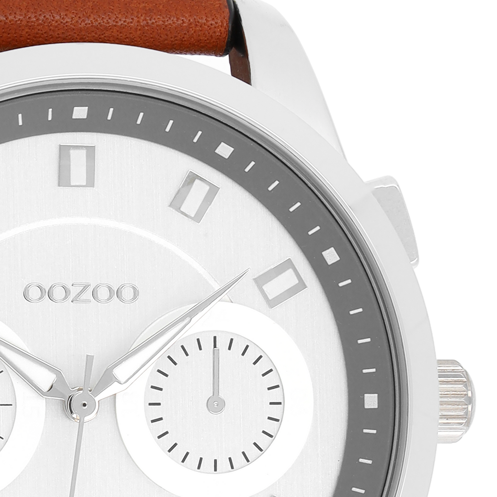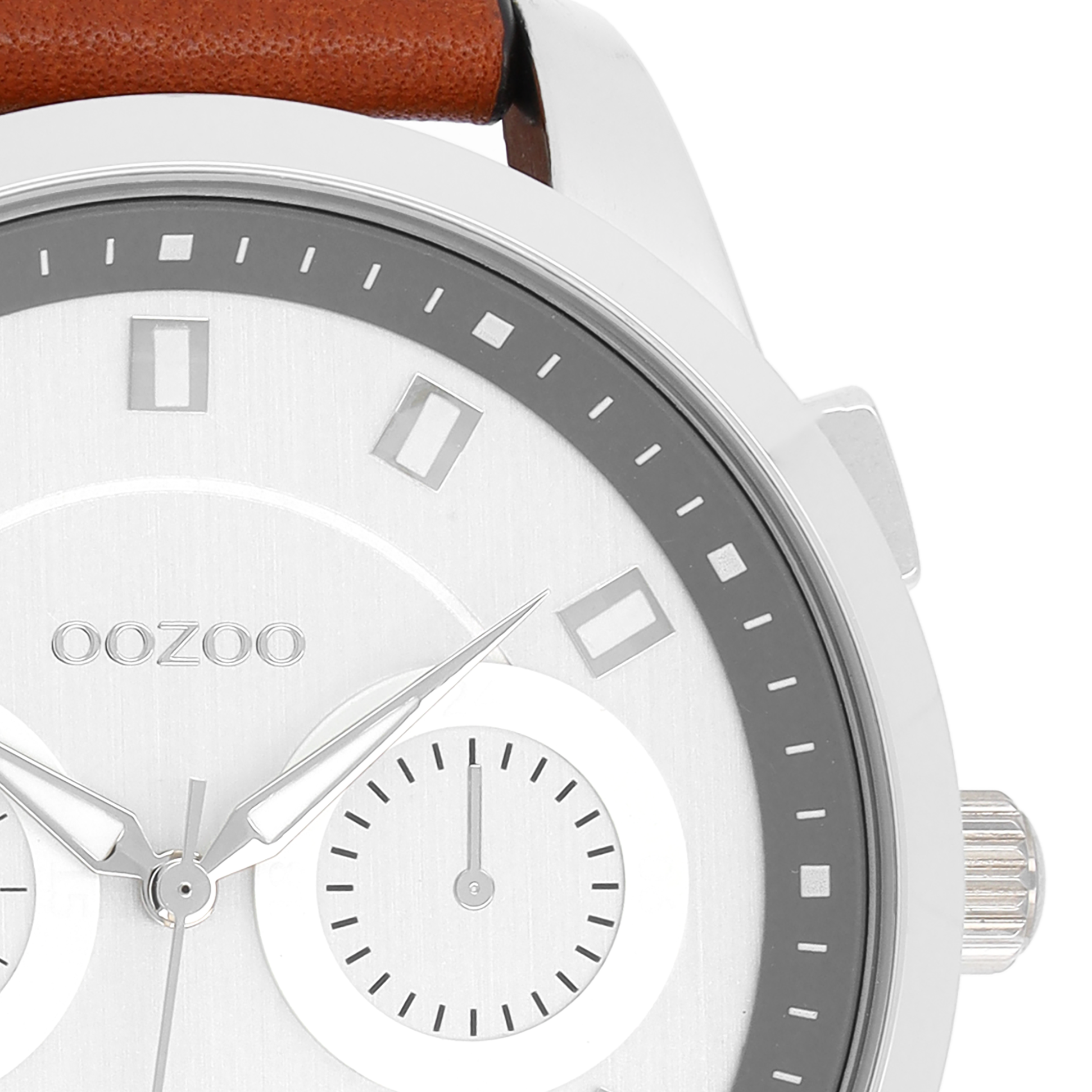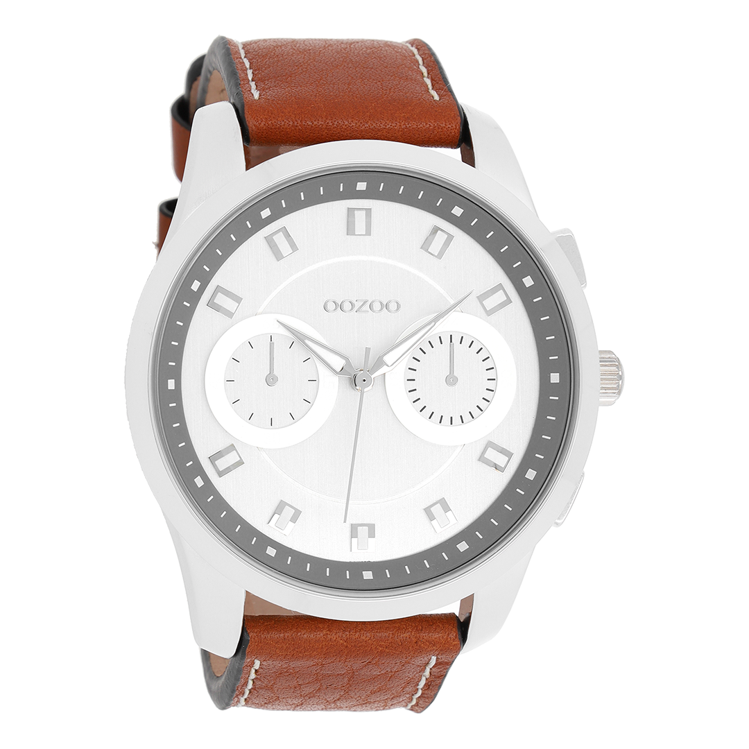 Silver coloured OOZOO watch with cognac leather strap - C8205