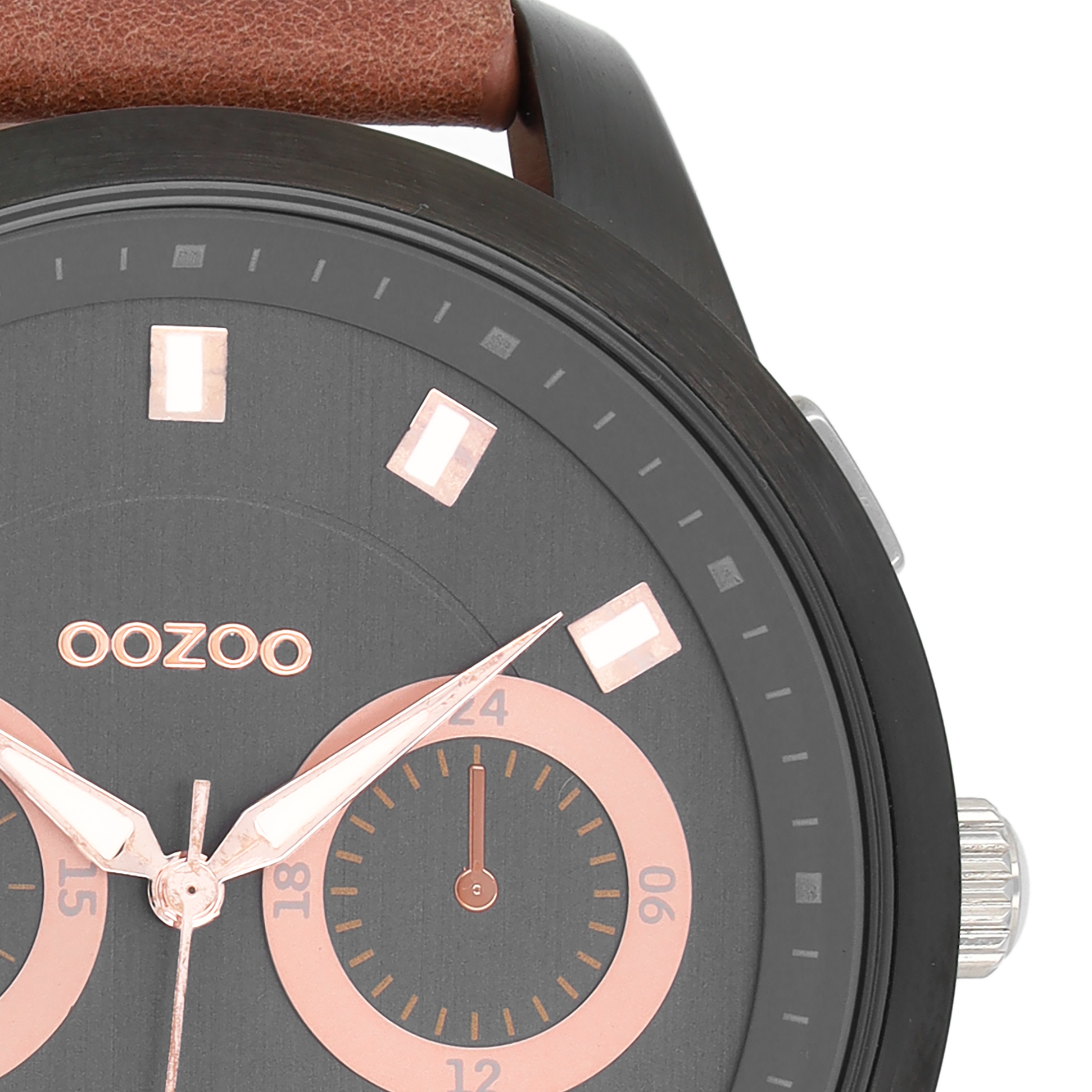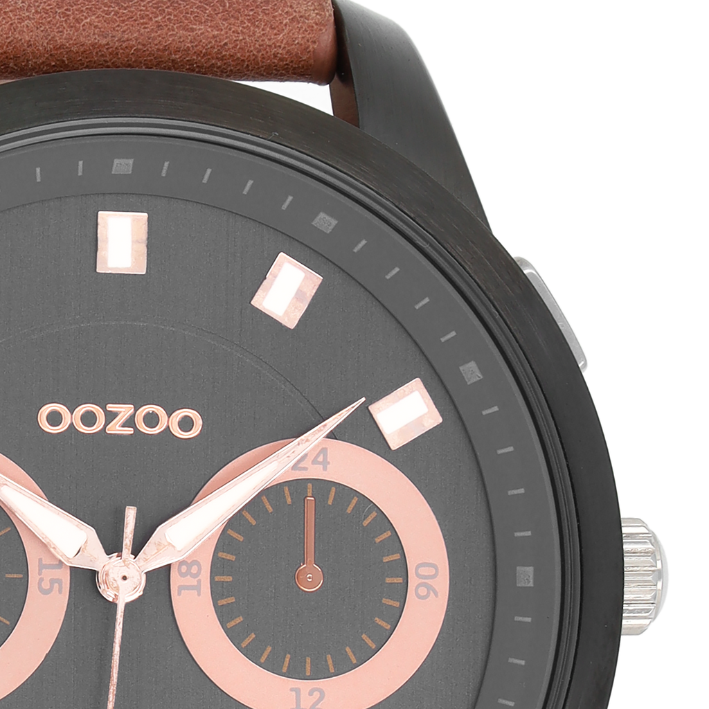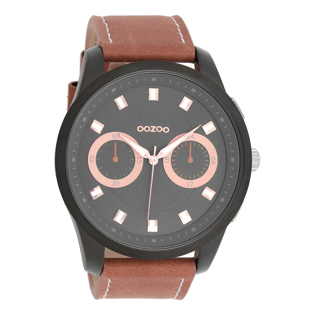 Stand out with this beautiful round gents design from the trendy OOZOO Timepieces collection. The C8208 has a brown leather strap and 48 mm black metal watch case. You are making quite the fashion statement with this black chrono dial, pink stripes digits and matching hands. This essential watch for your wardrobe has a mineral glass, stainless steel backplate and is nickel safe. This watch has a 2 Japanese movement and is covered by a 2 year warranty (see section 3 of our Refund, shipping & warranty policy).