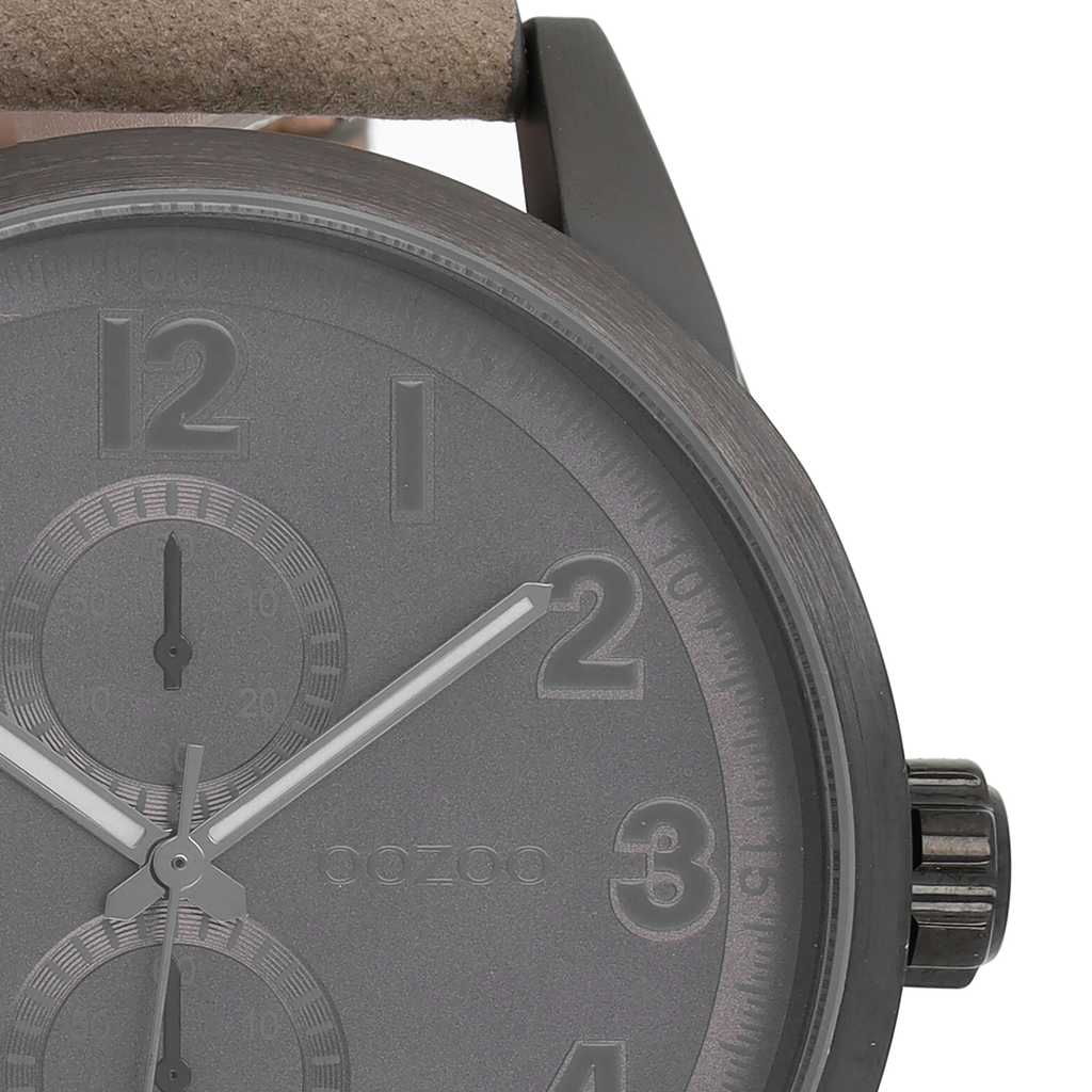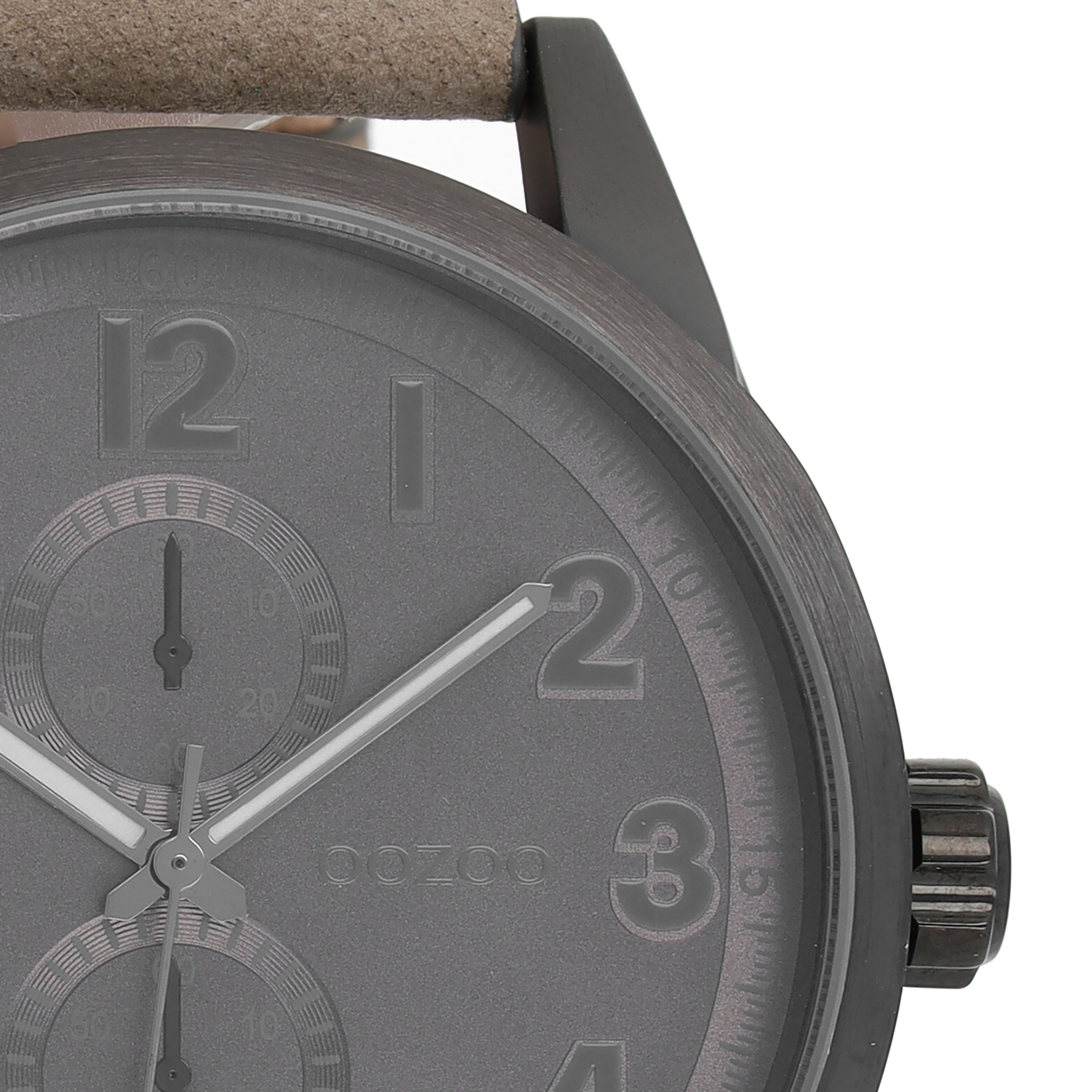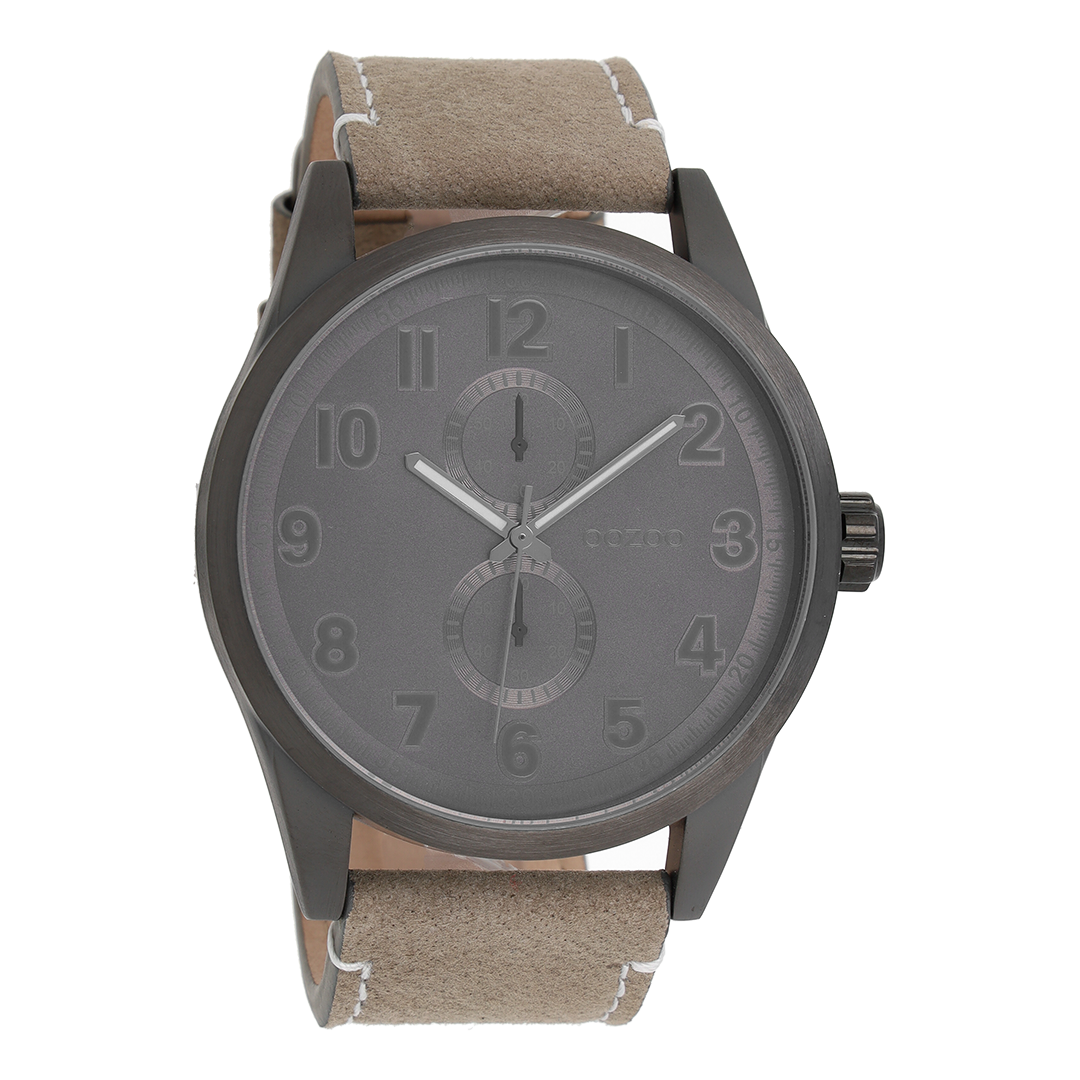 Stand out with this beautiful round gents design from the trendy OOZOO Timepieces collection. The C8223 has a dark grey leather strap and 50 mm black metal watch case. You are making quite the fashion statement with this dark grey chrono dial, dark grey numbers digits and black hands. This essential watch for your wardrobe has a mineral glass, stainless steel backplate and is nickel safe. This watch has a 2 Japanese movement and is covered by a 2 year warranty (see section 3 of our Refund, shipping & warranty policy).