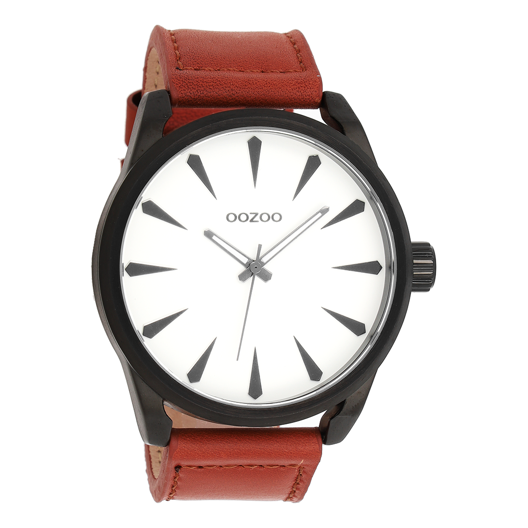 Stand out with this beautiful round gents design from the trendy OOZOO Timepieces collection. The C8226 has a cognac leather strap and 48 mm black metal watch case. You are making quite the fashion statement with this white dial, black stripes digits and matching hands. This essential watch for your wardrobe has a mineral glass, stainless steel backplate and is nickel safe. This watch has a 2 Japanese movement and is covered by a 2 year warranty (see section 3 of our Refund, shipping & warranty policy).