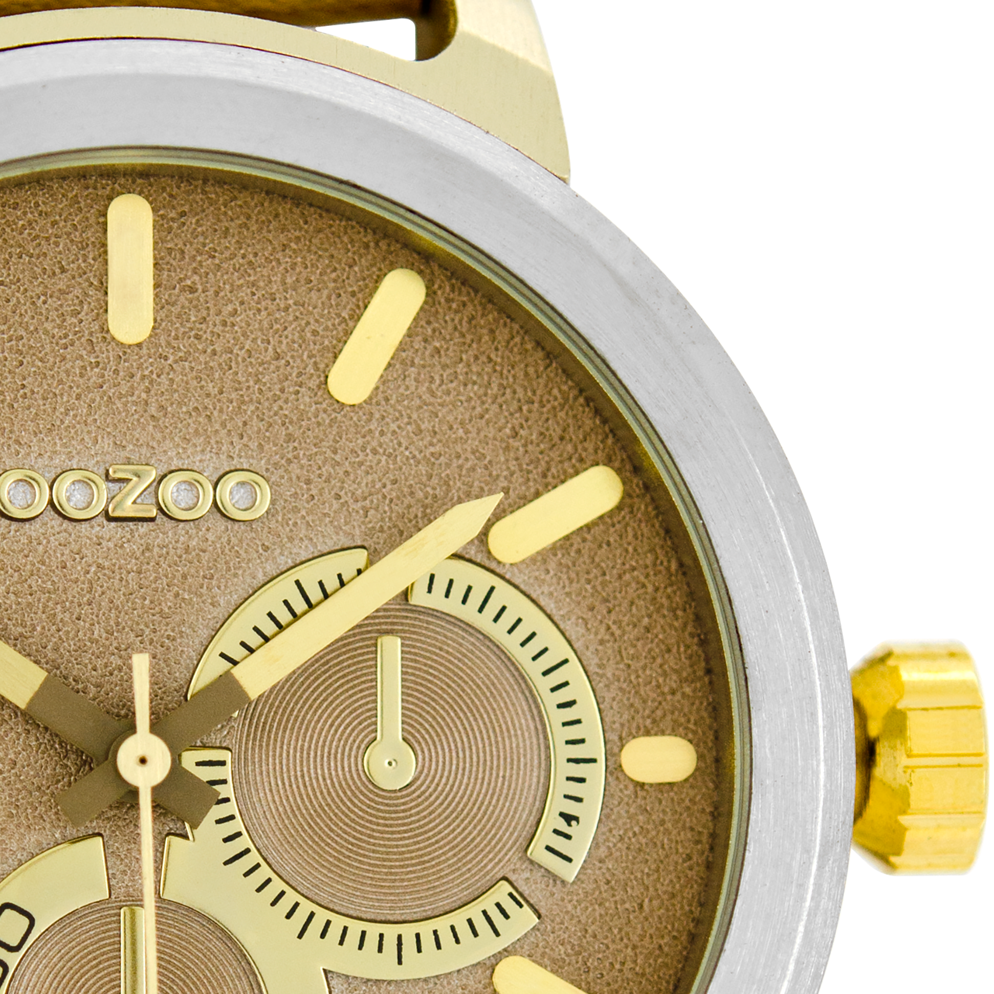 Silver coloured OOZOO watch with sand leather strap - C8293