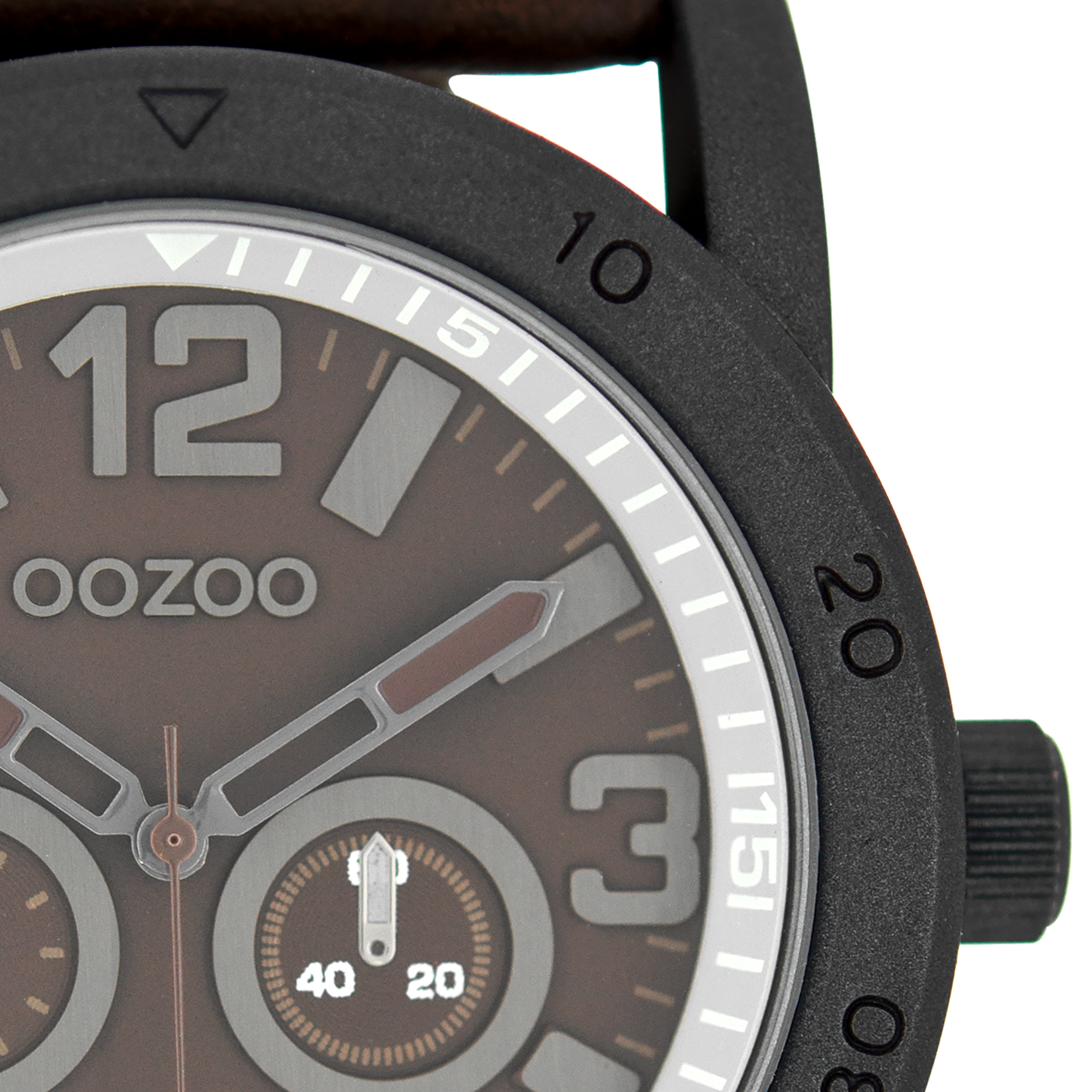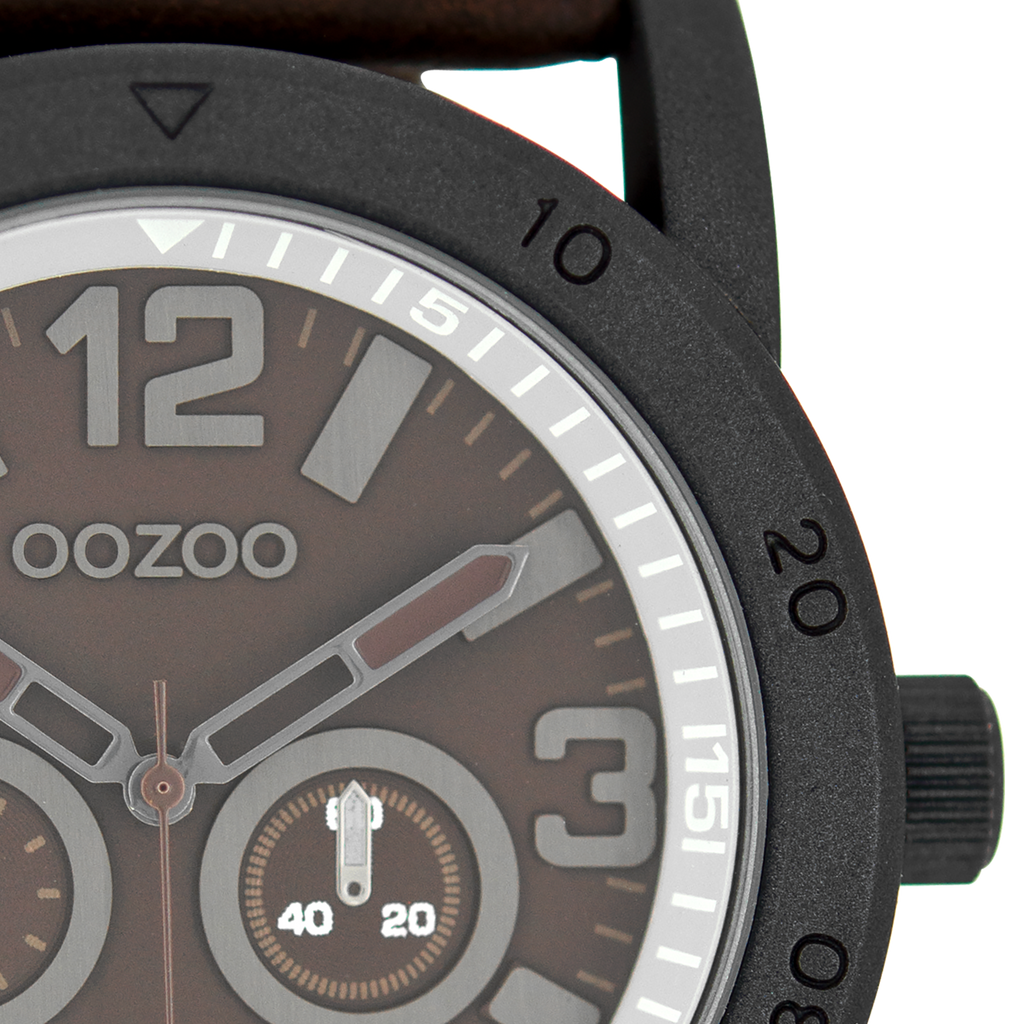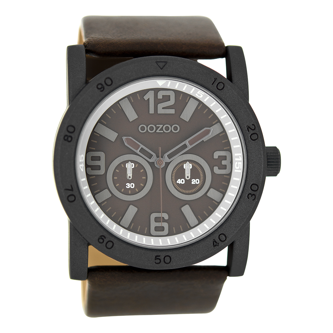 Stand out with this beautiful round gents design from the trendy OOZOO Timepieces collection. The C8308 has a dark brown leather strap and 47 mm black metal watch case. You are making quite the fashion statement with this dark brown chrono dial, titanium stripes and numbers digits and matching hands. This essential watch for your wardrobe has a mineral glass, stainless steel backplate and is nickel safe. This watch has a 2 Japanese movement and is covered by a 2 year warranty (see section 3 of our Refund, shipping & warranty policy).