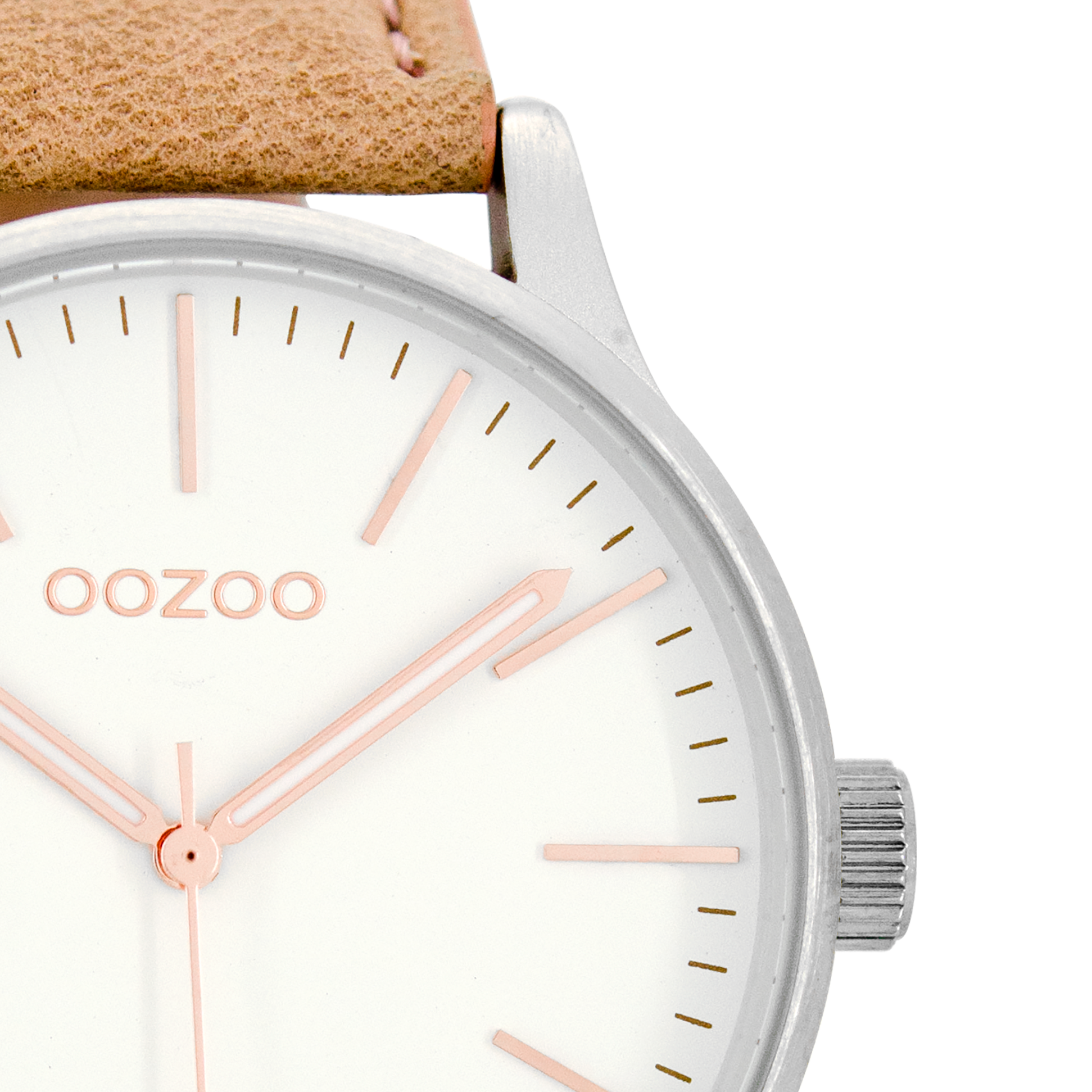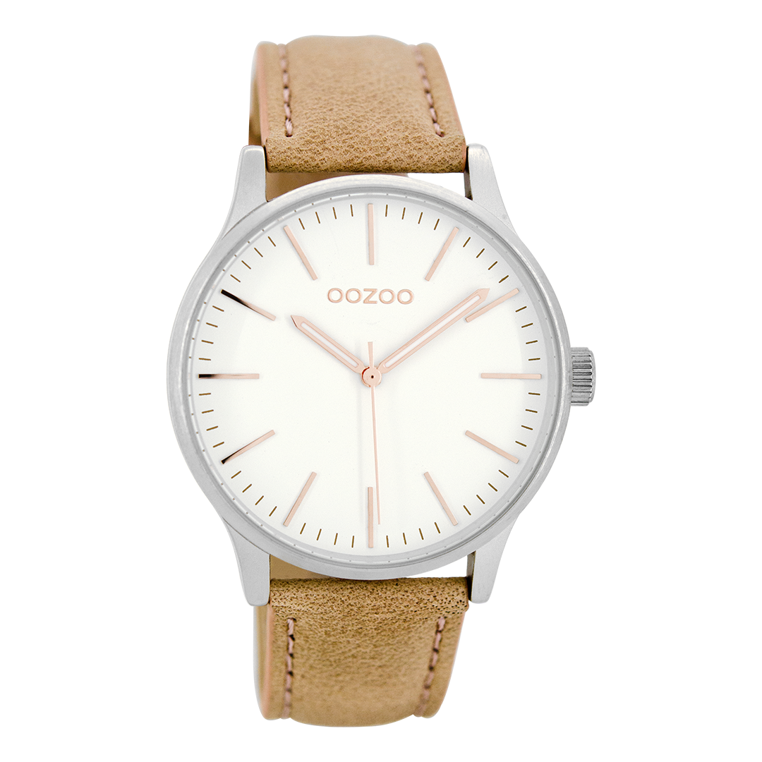 Silver coloured OOZOO watch with pink grey leather strap - C8541