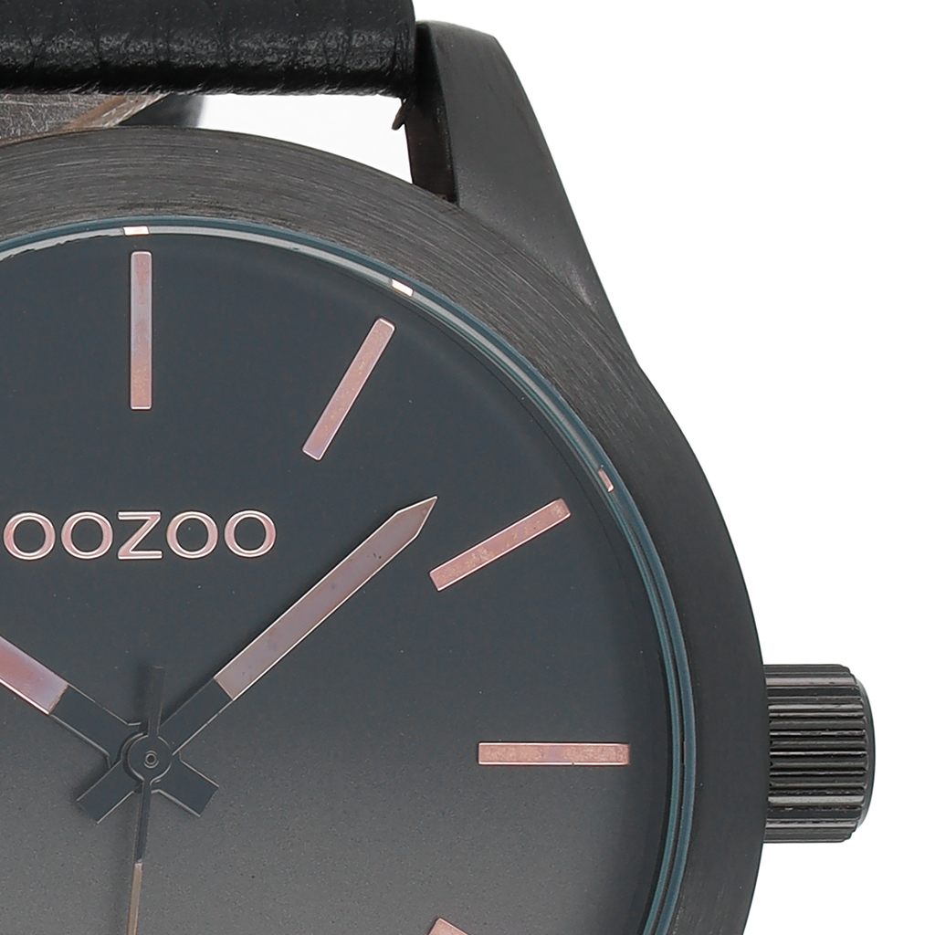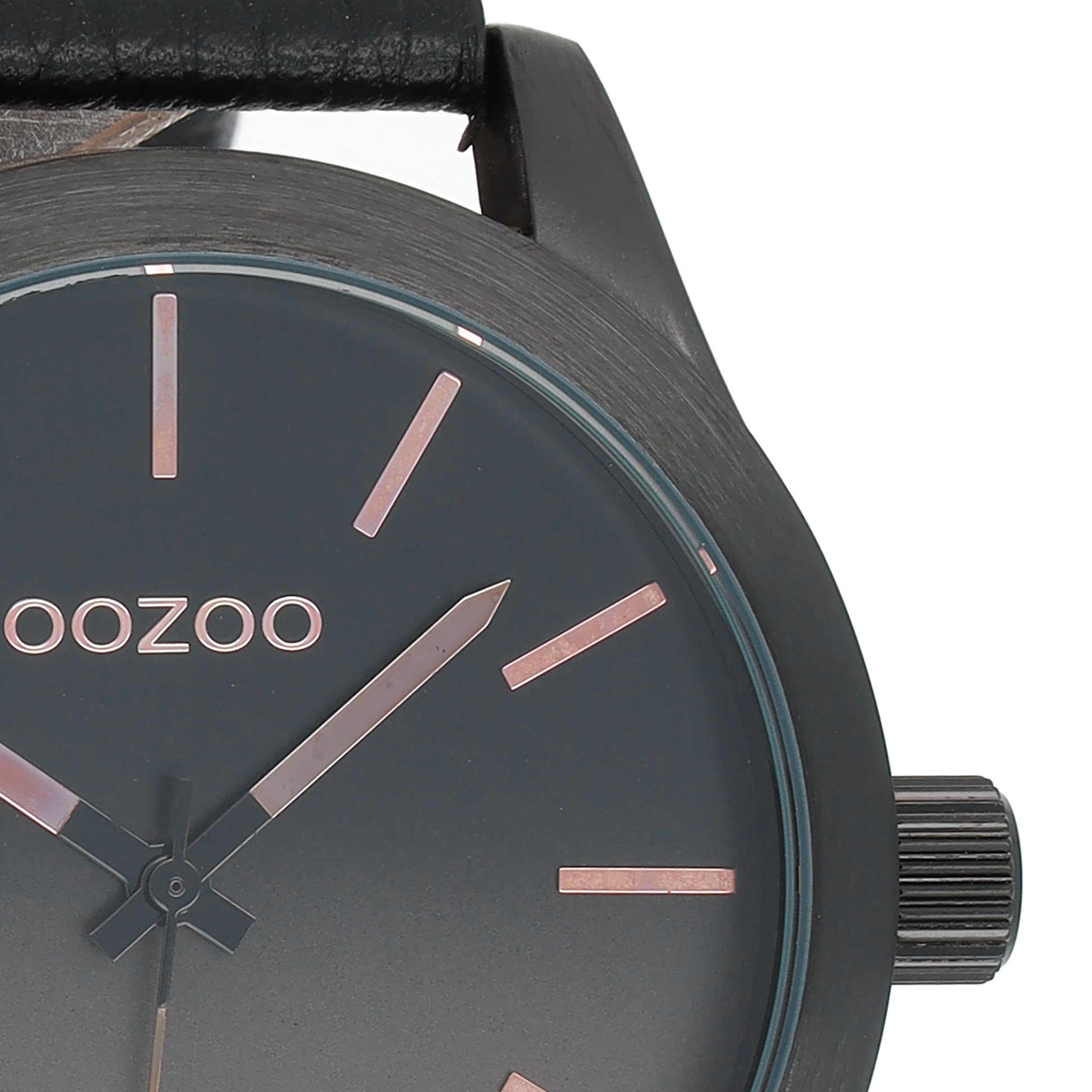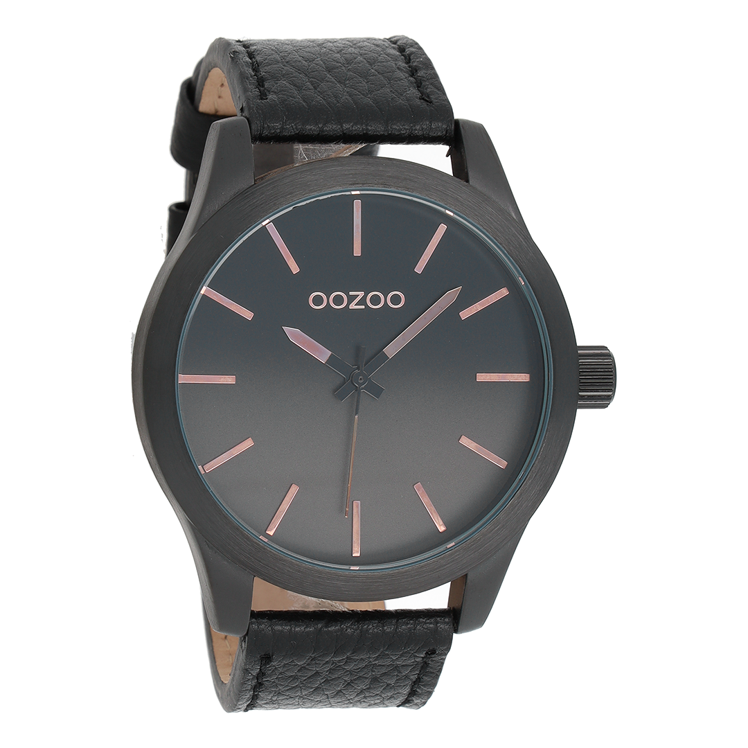 Stand out with this beautiful round gents design from the trendy OOZOO Timepieces collection. The C8558 has a black leather strap and 48 mm black metal watch case. You are making quite the fashion statement with this black dial, rose gold coloured stripes digits and rose gold coloured/black hands. This essential watch for your wardrobe has a mineral glass, stainless steel backplate and is nickel safe. This watch has a 2 Japanese movement and is covered by a 2 year warranty (see section 3 of our Refund, shipping & warranty policy).