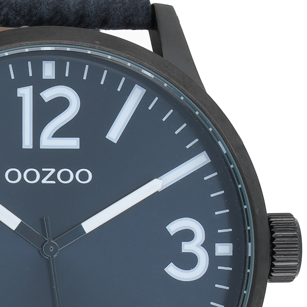 Black OOZOO watch with dark blue leather strap - C8572