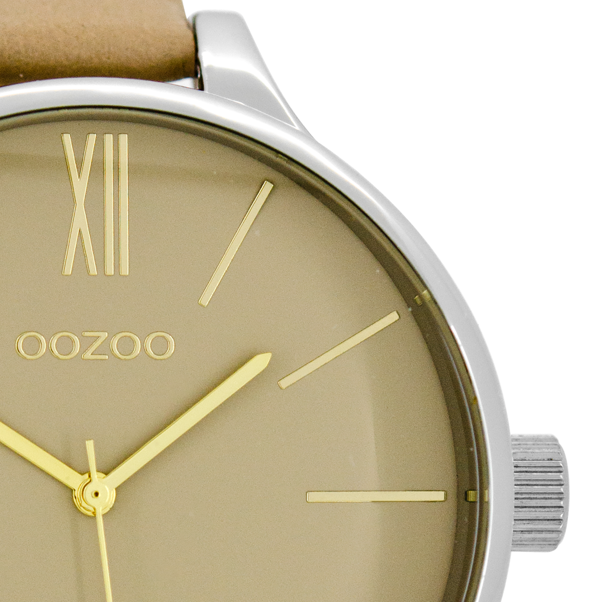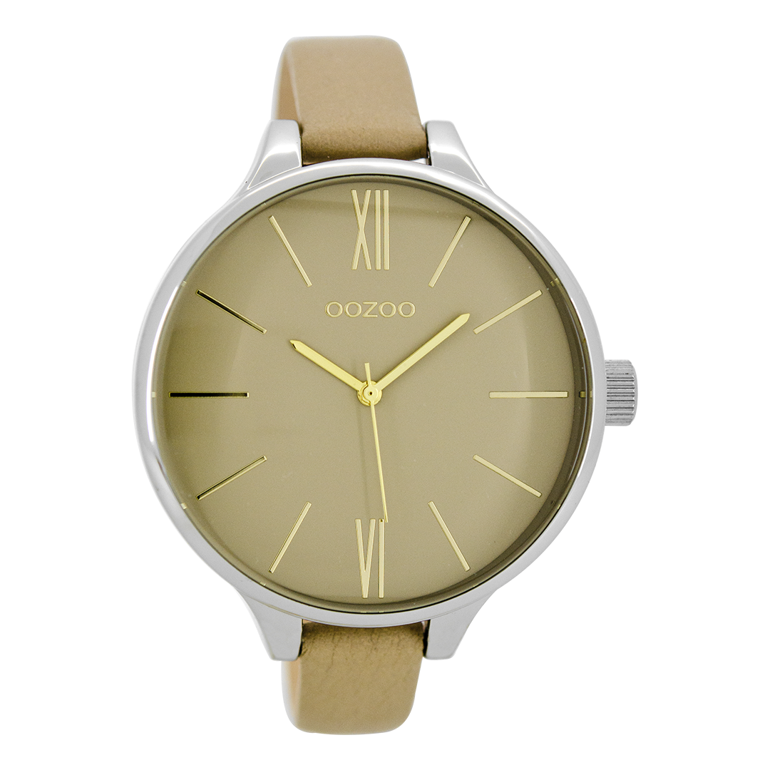 Silver coloured OOZOO watch with sand leather strap - C8636