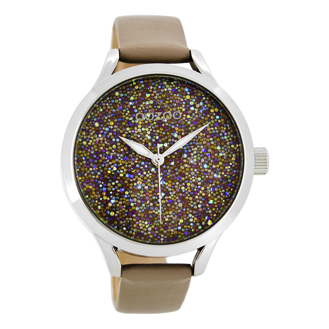 Silver coloured OOZOO watch with taupe leather strap - C8647