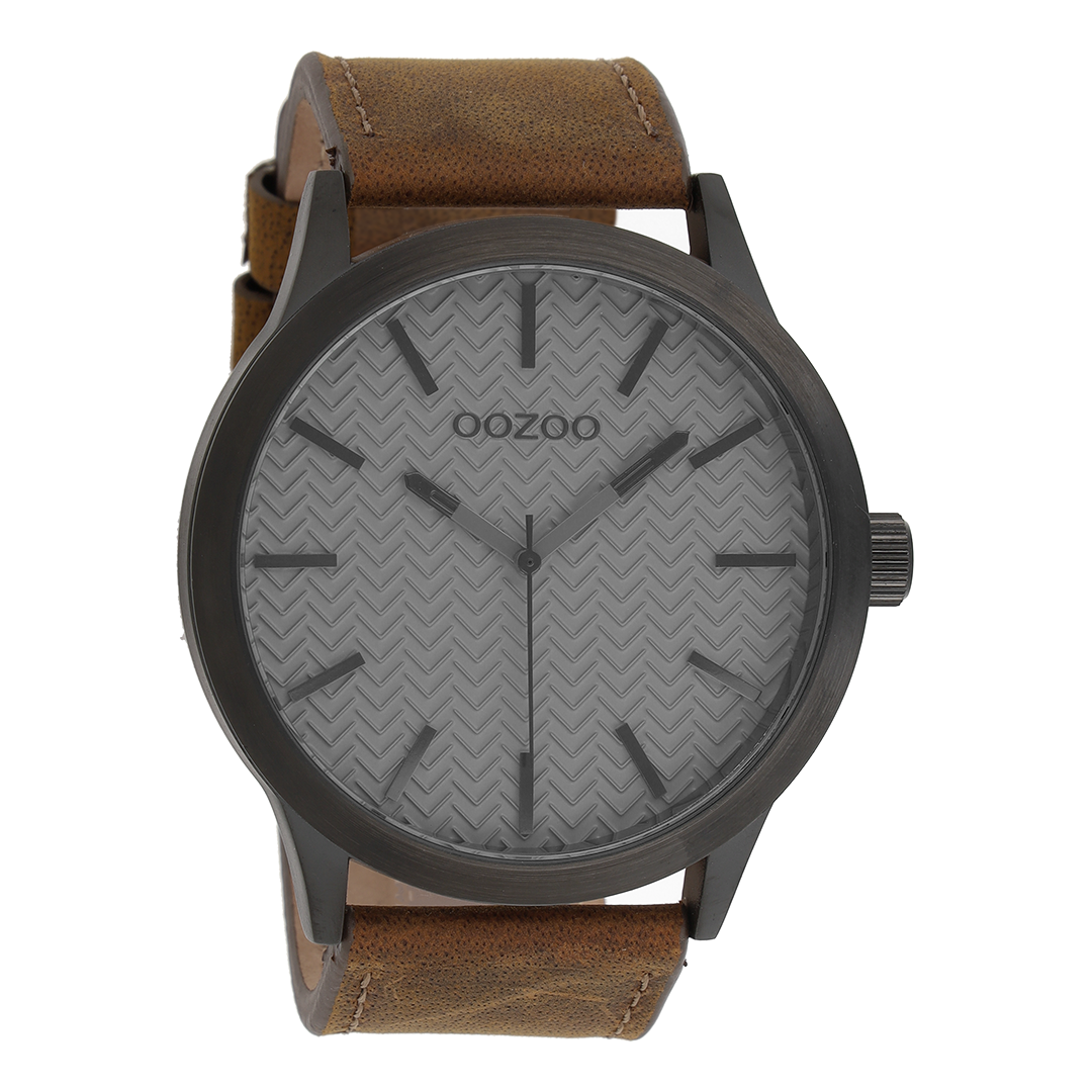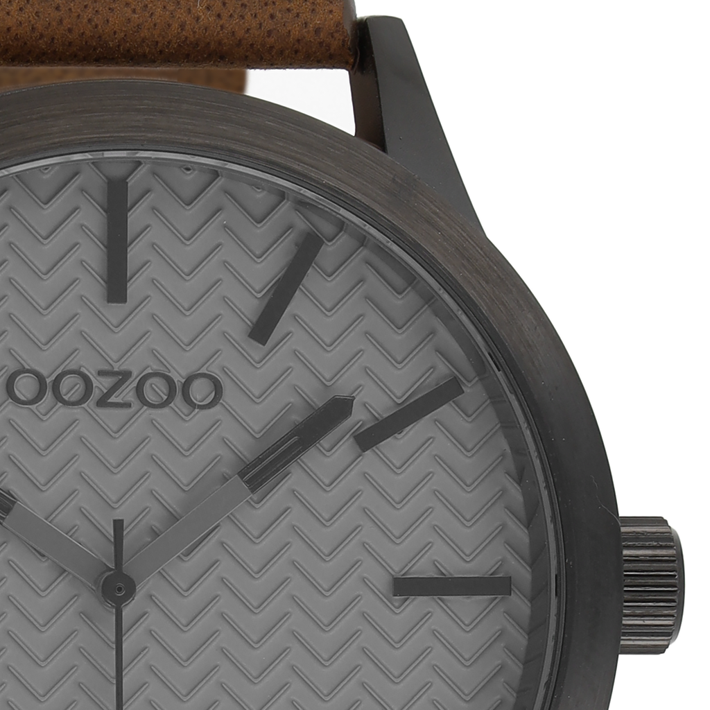 Black OOZOO watch with brown leather strap - C9012