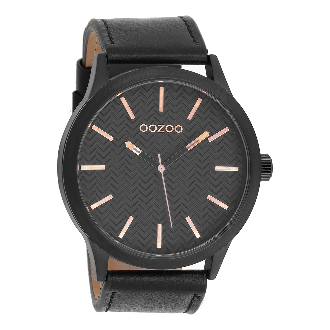 Black OOZOO watch with leather strap - C9014