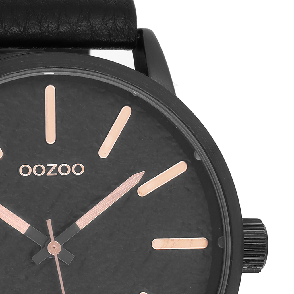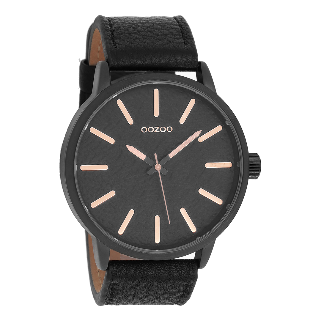 Stand out with this beautiful round gents design from the trendy OOZOO Timepieces collection. The C9029 has a black leather strap and 48 mm black metal watch case. You are making quite the fashion statement with this black dial, rose gold coloured stripes digits and rose gold coloured/black hands. This essential watch for your wardrobe has a mineral glass, stainless steel backplate and is nickel safe. This watch has a 2 Japanese movement and is covered by a 2 year warranty (see section 3 of our Refund, shipping & warranty policy).