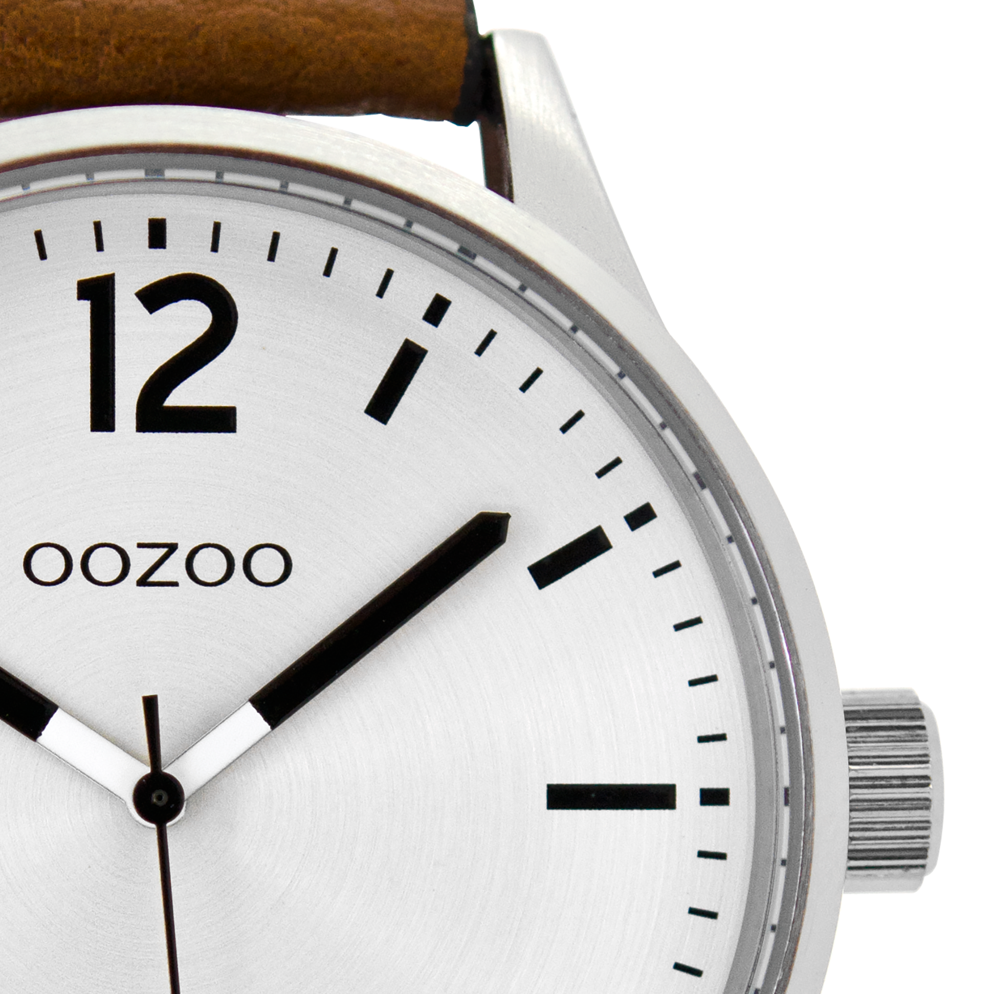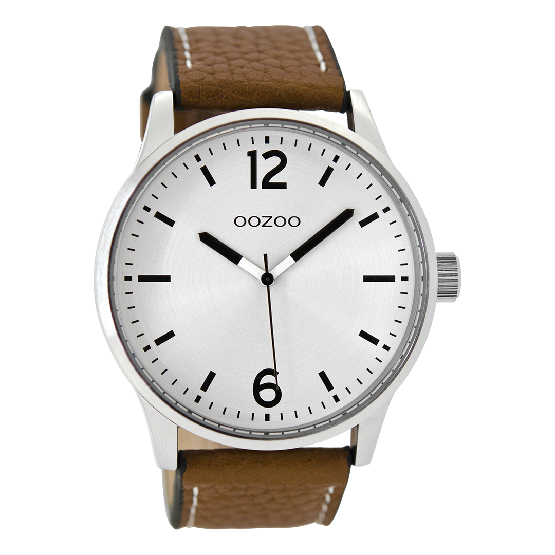 Silver coloured OOZOO watch with cognac leather strap - C9045