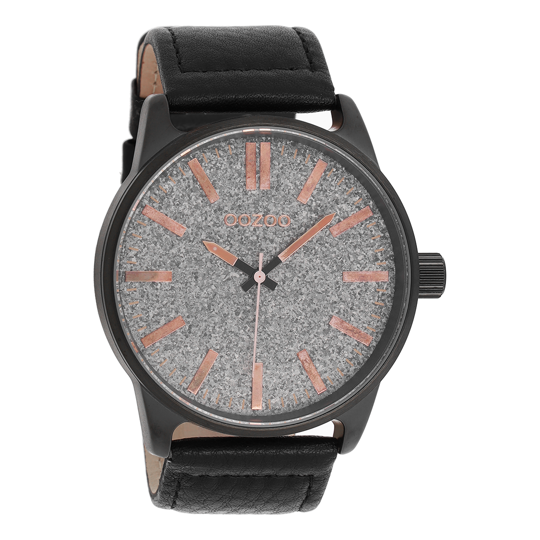 Black OOZOO watch with leather strap - C9063