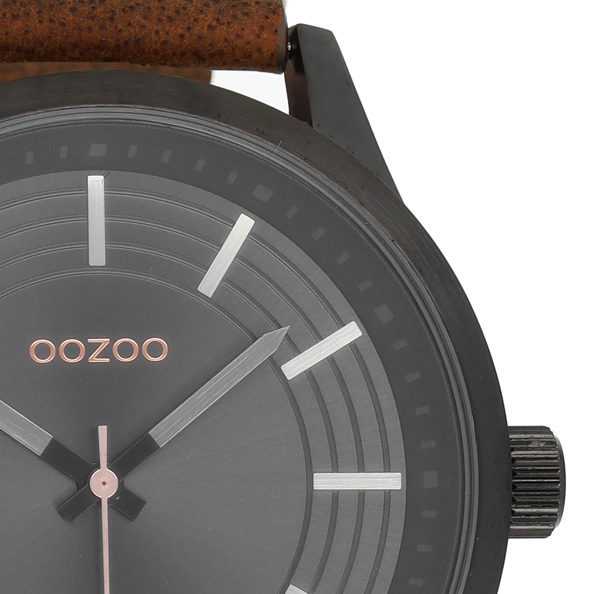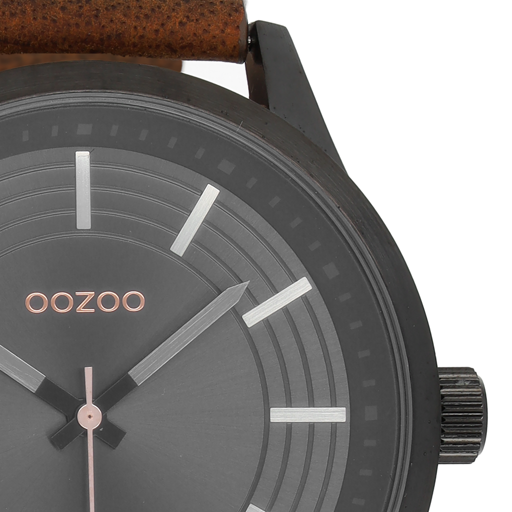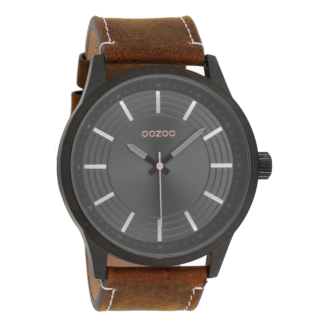 Stand out with this beautiful round gents design from the trendy OOZOO Timepieces collection. The C9077 has a dark brown leather strap and 50 mm black metal watch case. You are making quite the fashion statement with this black chrono dial, grey stripes digits and black/grey hands. This essential watch for your wardrobe has a mineral glass, stainless steel backplate and is nickel safe. This watch has a 2 Japanese movement and is covered by a 2 year warranty (see section 3 of our Refund, shipping & warranty policy).