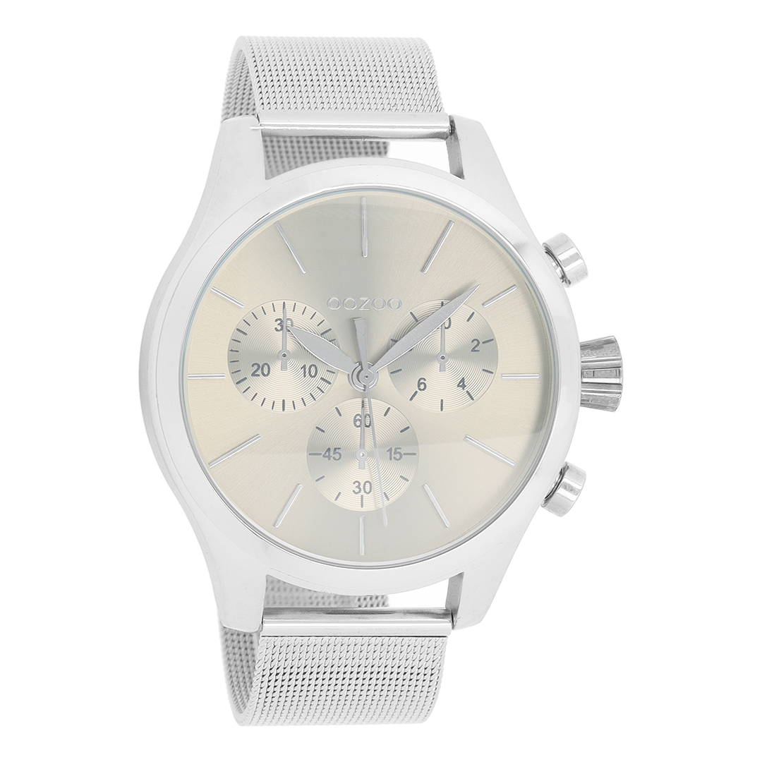 Silver coloured OOZOO watch with metal mesh bracelet - C9095
