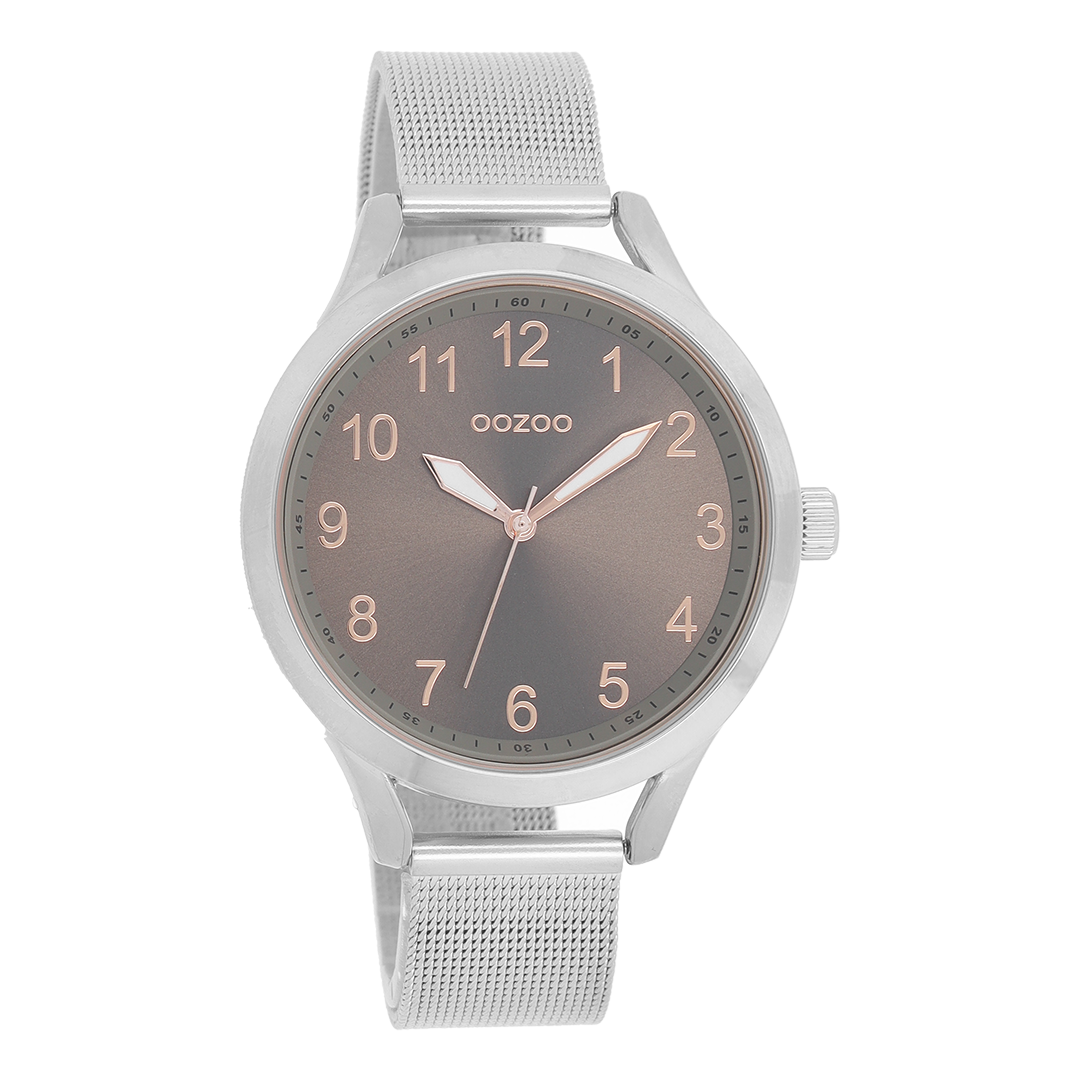 Silver coloured OOZOO watch with metal mesh bracelet - C9116