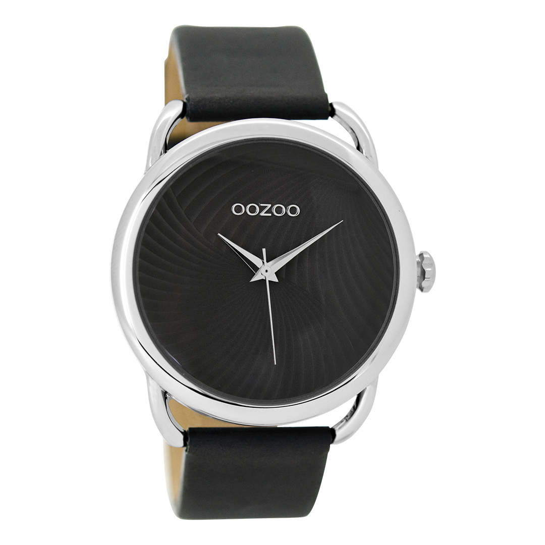 Silver coloured OOZOO watch with elephant grey leather strap - C9163