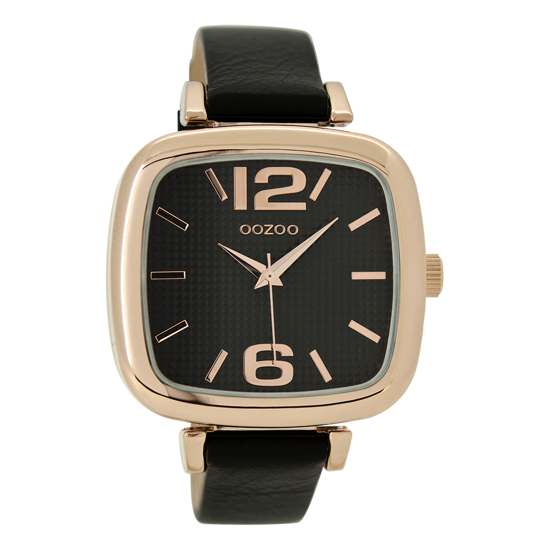 Rose gold coloured OOZOO watch with black leather strap - C9184