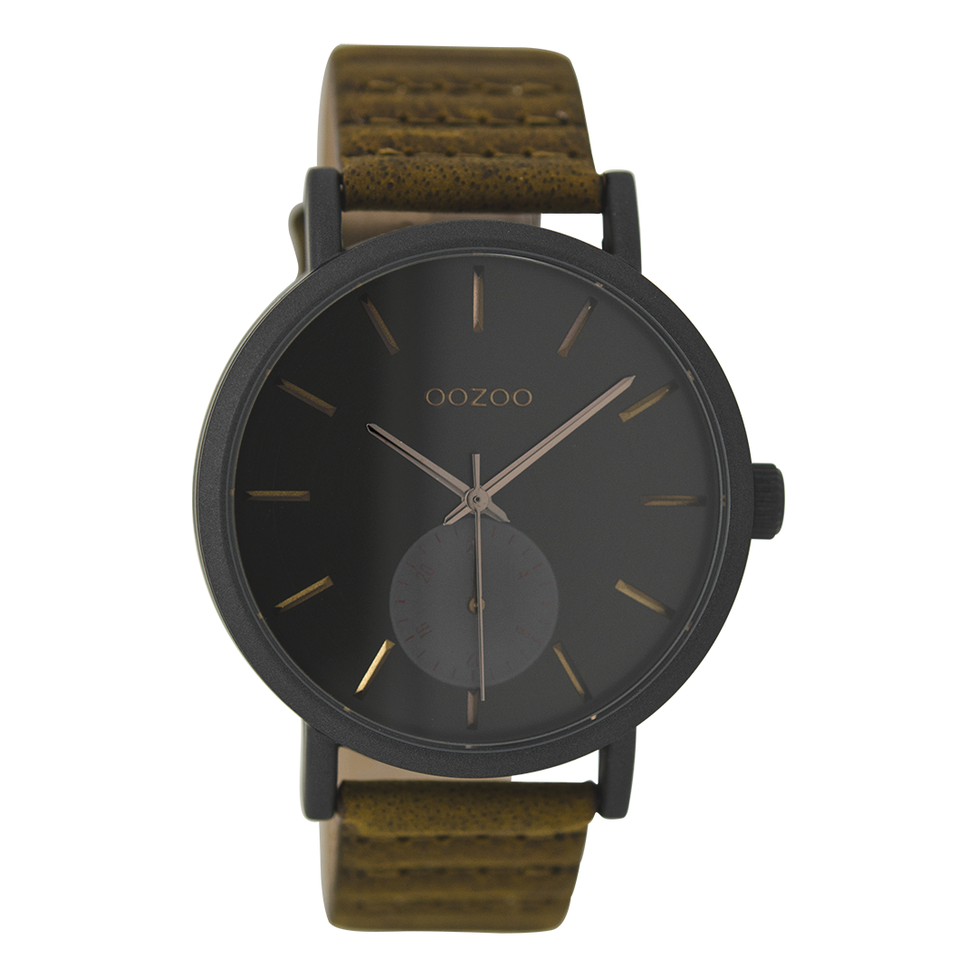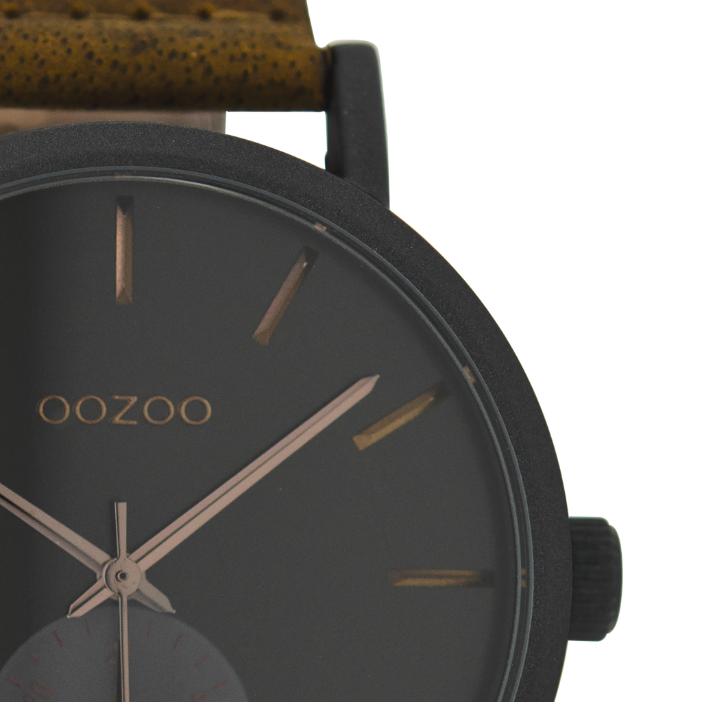 Black OOZOO watch with brown leather strap - C9188