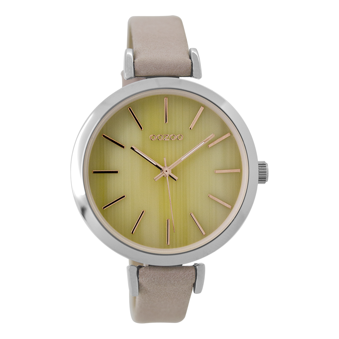Silver coloured OOZOO watch with pink grey leather strap - C9236