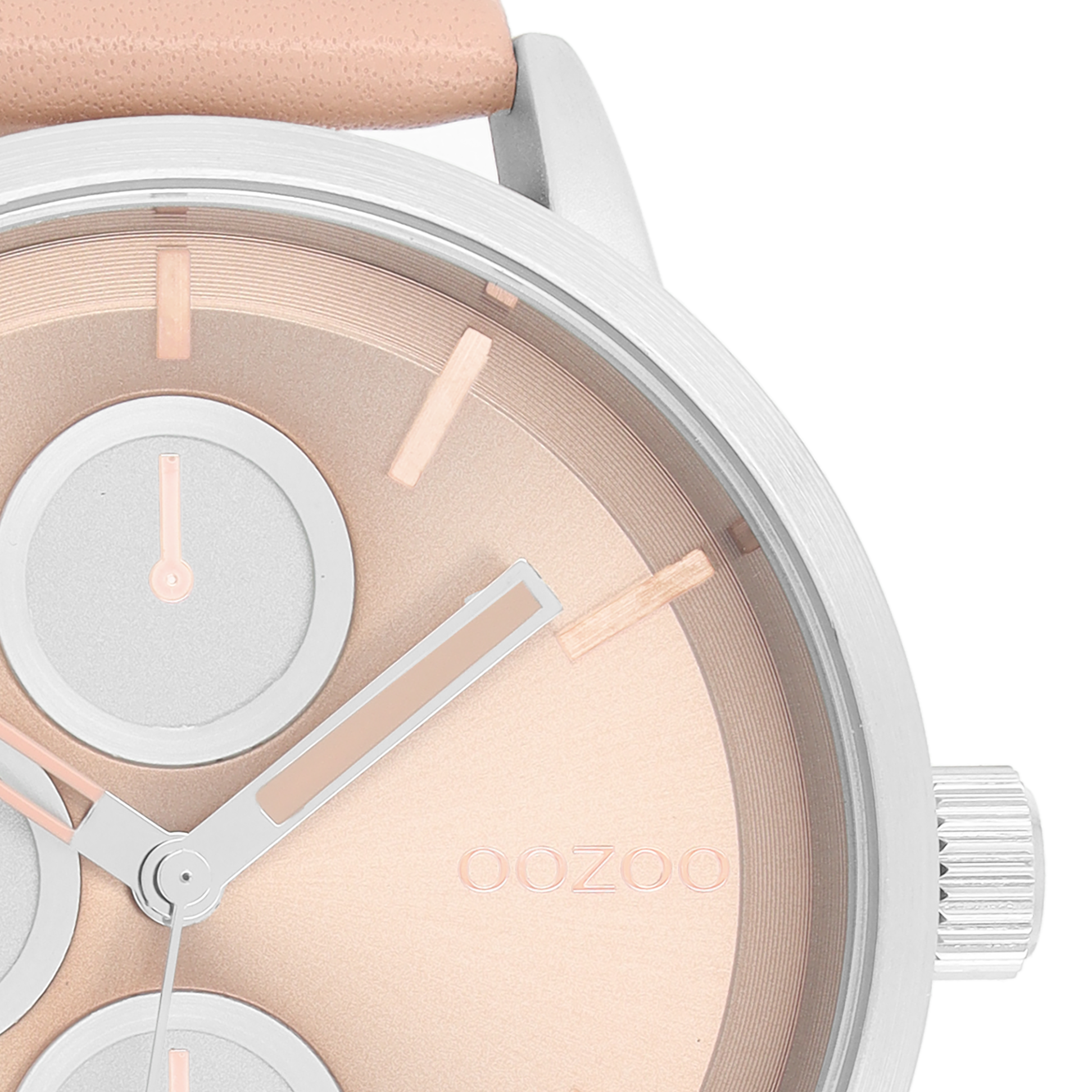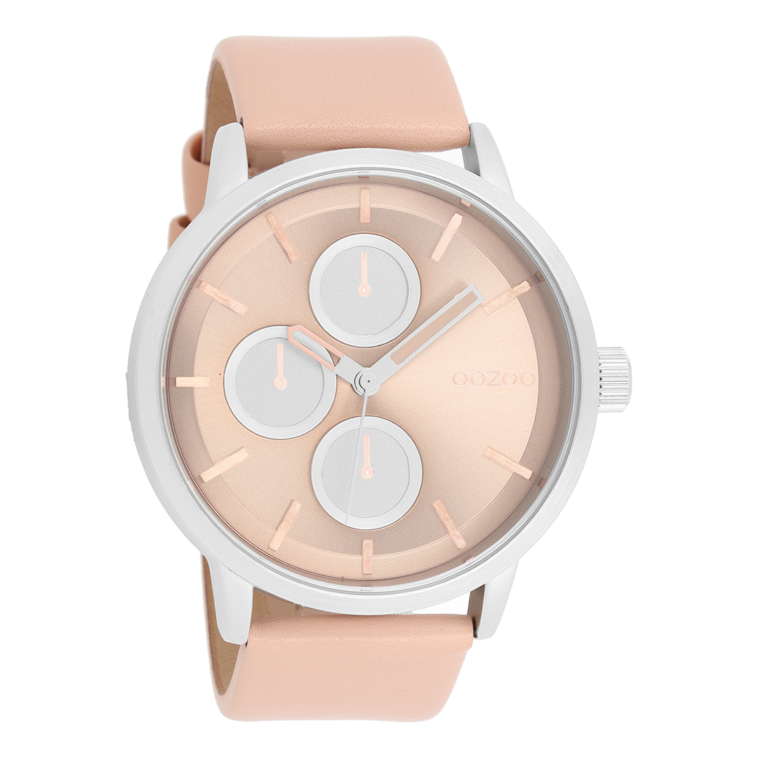 Silver coloured OOZOO watch with pink grey leather strap - C9425