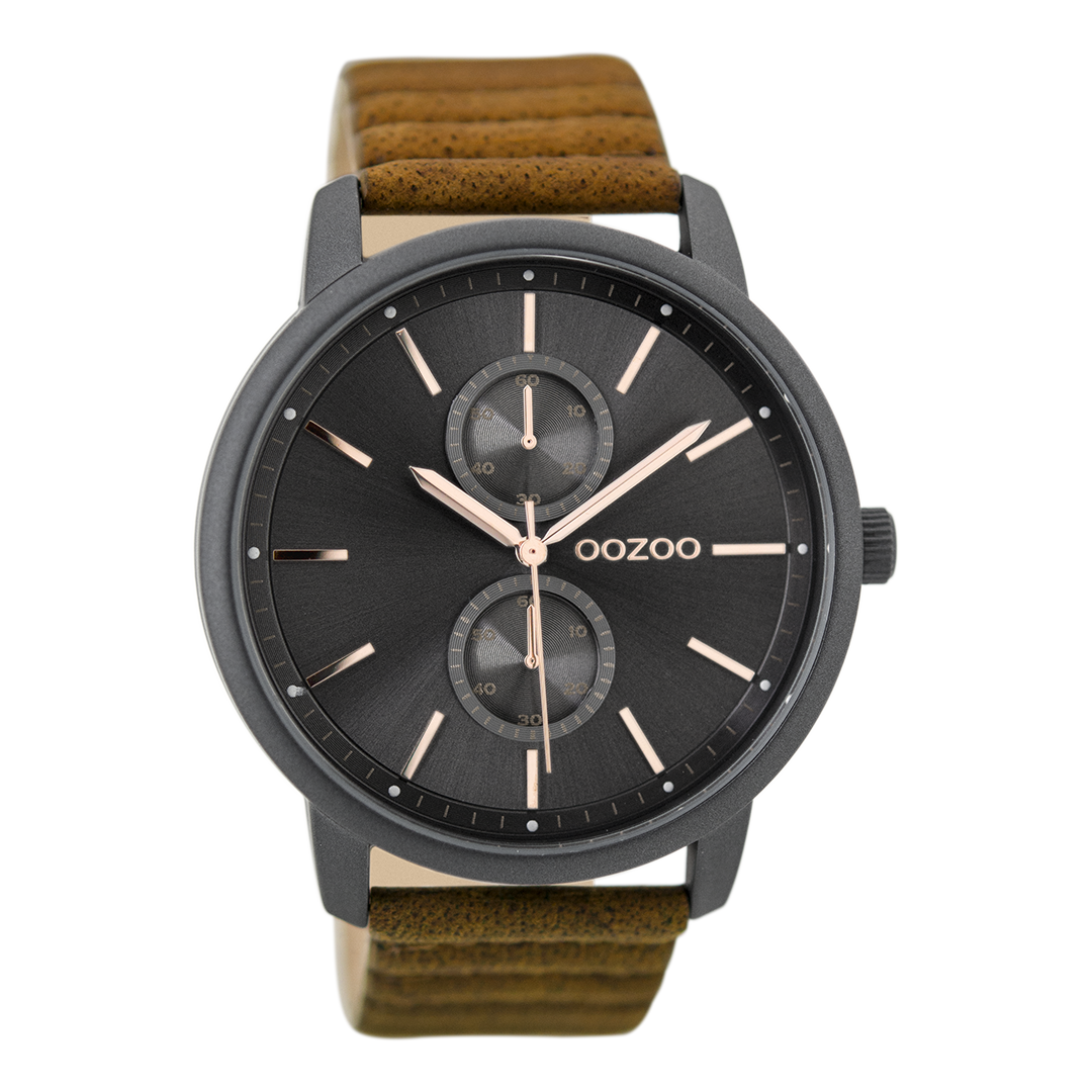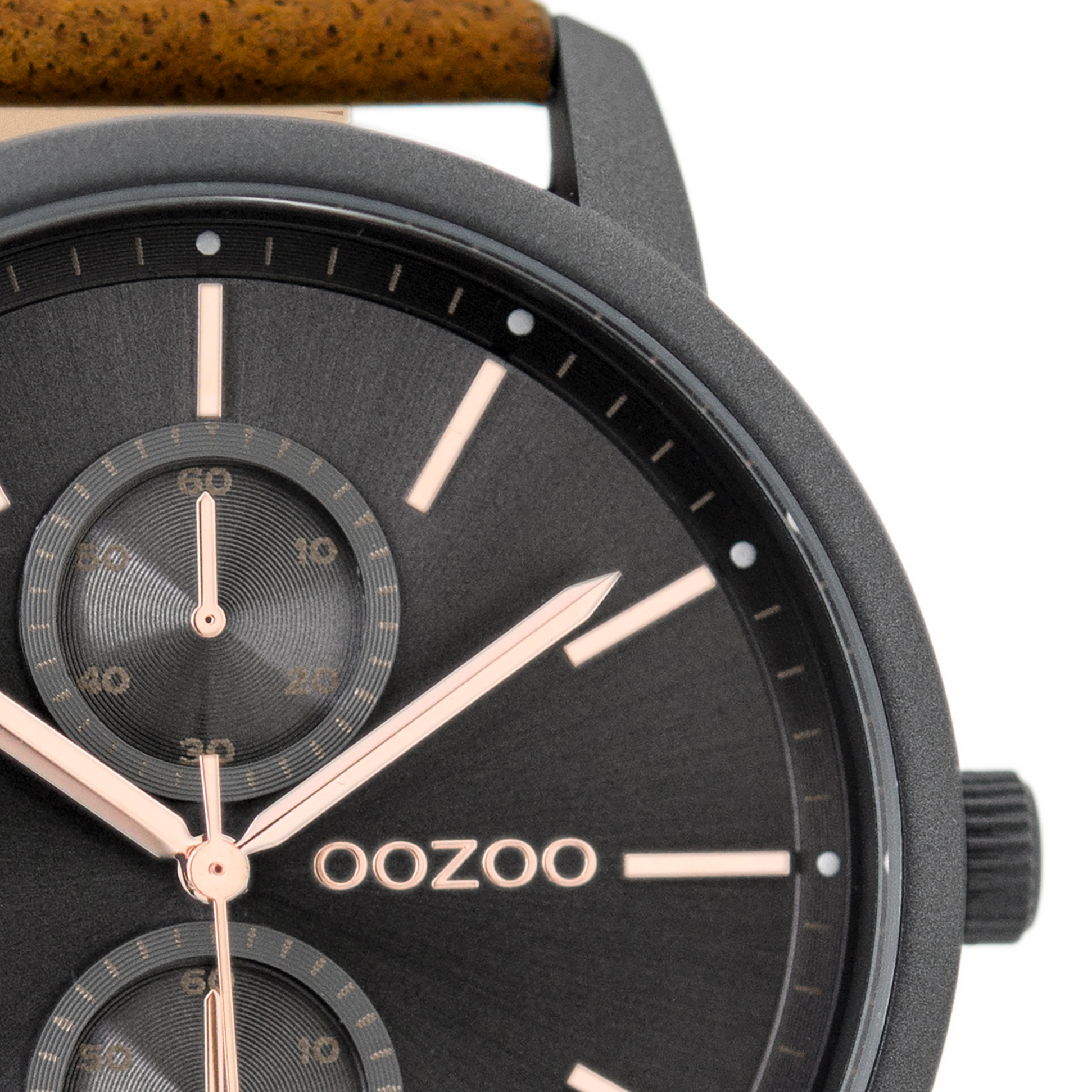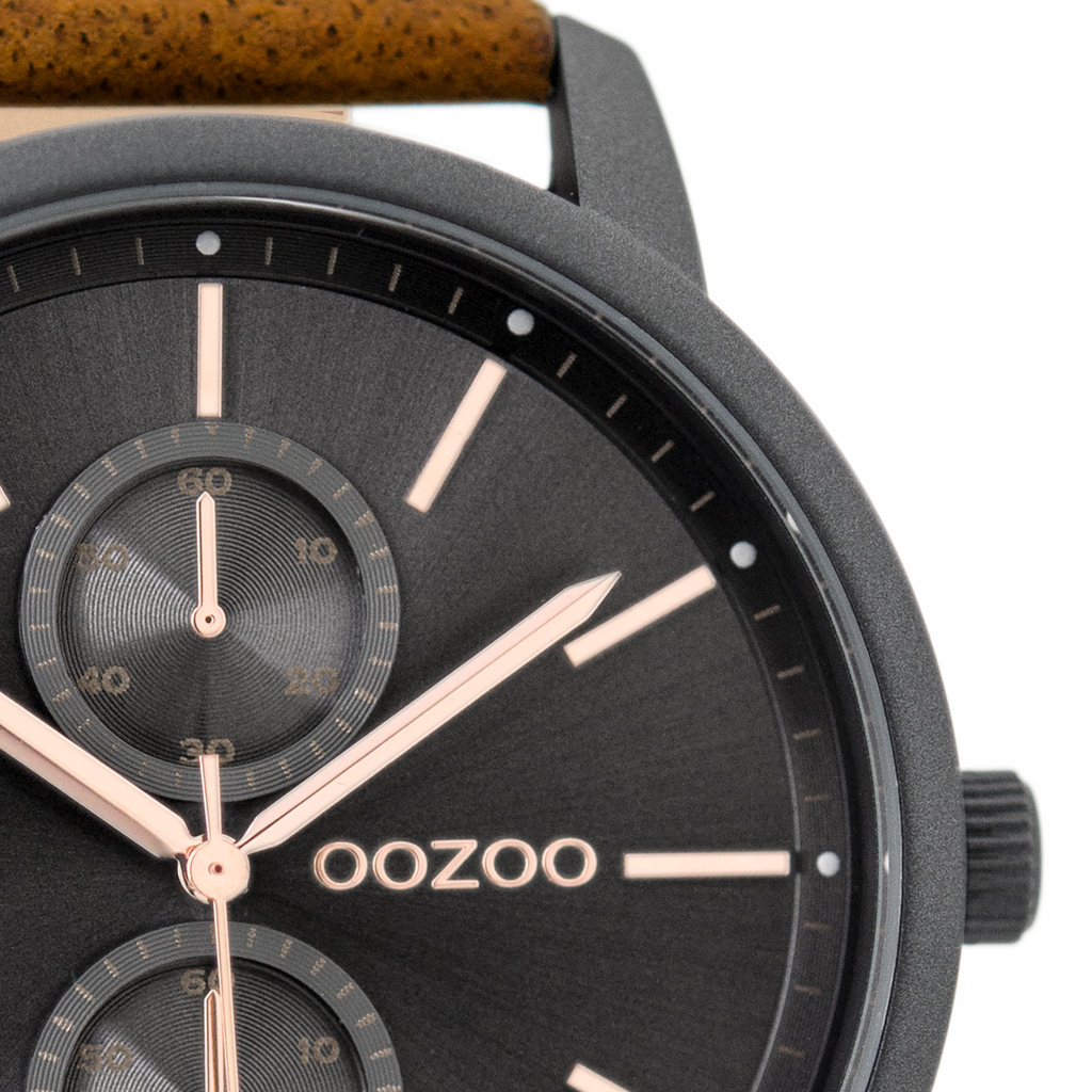 Stand out with this beautiful round unisex design from the trendy OOZOO Timepieces collection. The C9452 has a brown leather strap and 45 mm black metal watch case. You are making quite the fashion statement with this black chrono dial, rose gold coloured stripes digits and matching hands. This essential watch for your wardrobe has a mineral glass, stainless steel backplate and is nickel safe. This watch has a 2 Japanese movement and is covered by a 2 year warranty (see section 3 of our Refund, shipping & warranty policy).