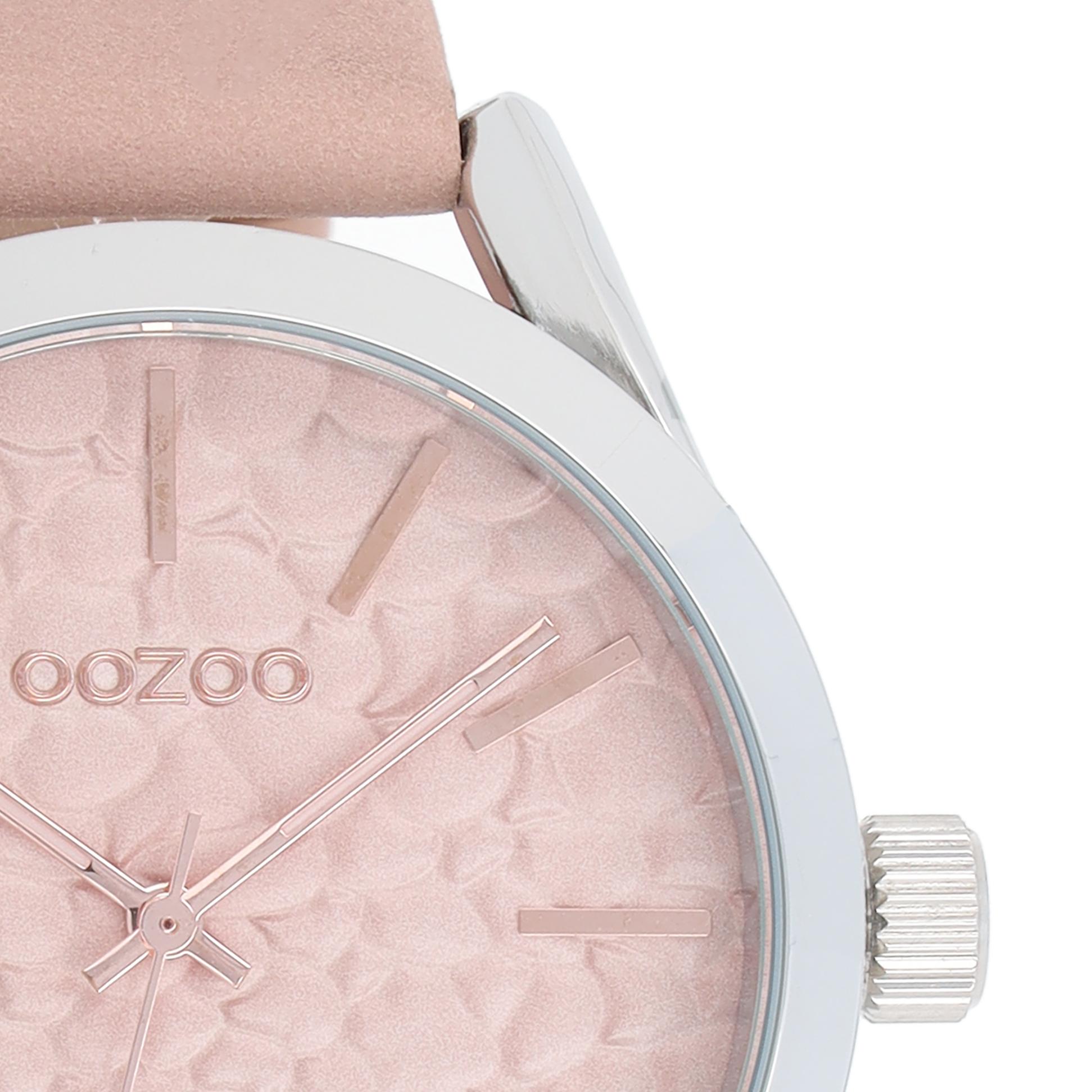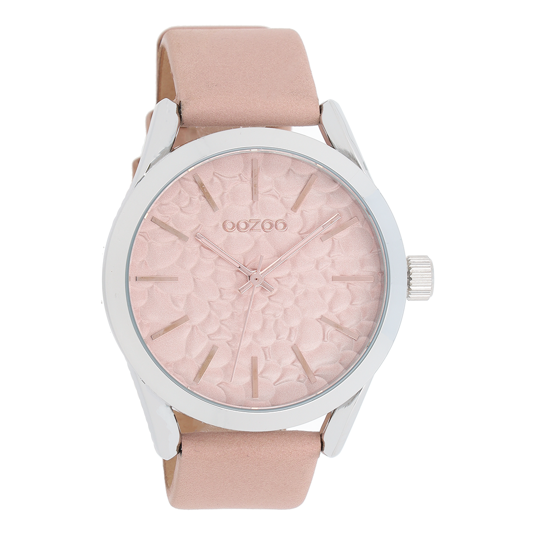 Silver coloured OOZOO watch with pink grey leather strap - C9472