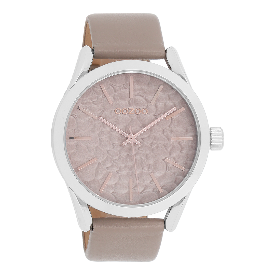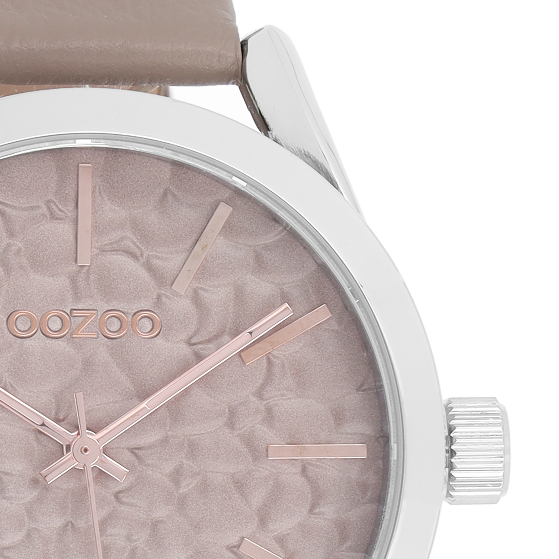 Silver coloured OOZOO watch with taupe leather strap - C9473
