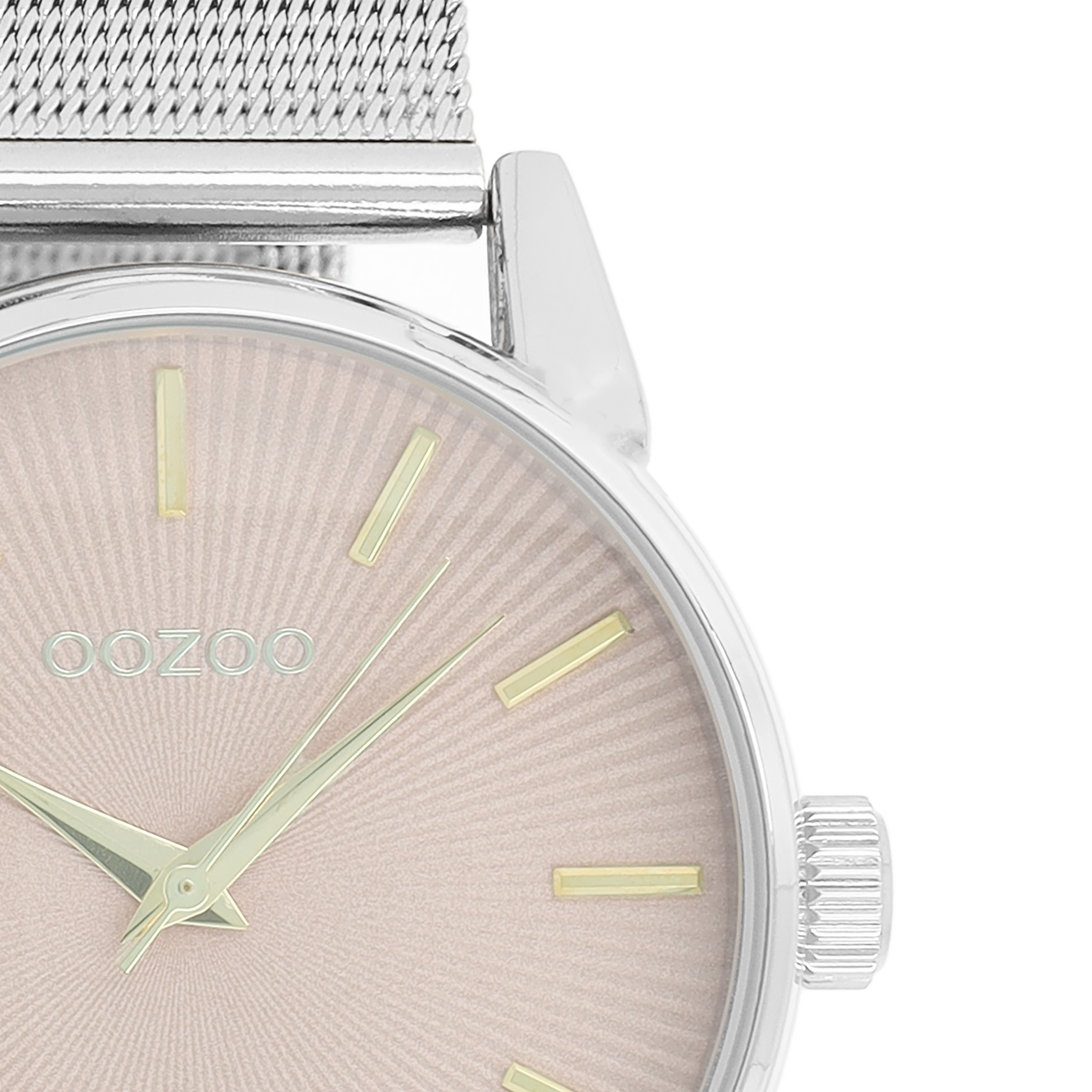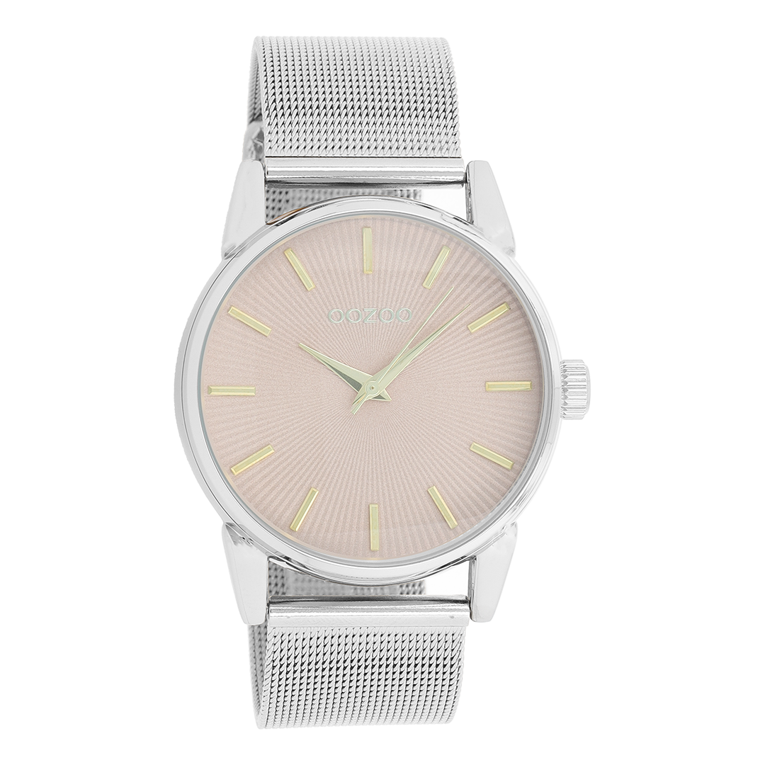 Silver coloured OOZOO watch with metal mesh bracelet - C9545