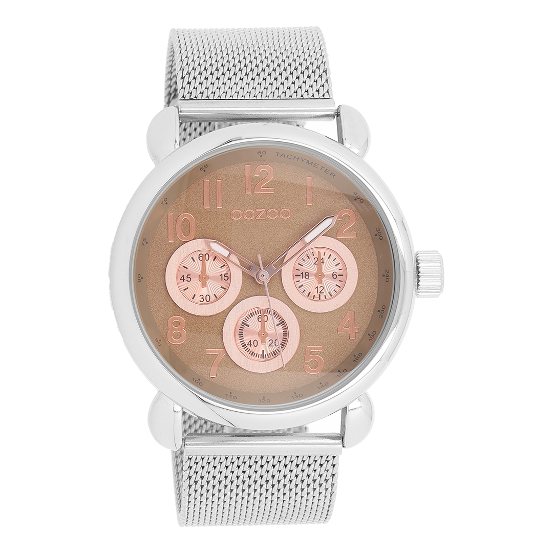 Stand out with this beautiful round unisex design from the trendy OOZOO Timepieces collection. The C9610 has a silver coloured metal mesh bracelet and 42 mm silver coloured metal watch case. You are making quite the fashion statement with this taupe chrono dial, rose gold coloured numbers digits and matching hands. This essential watch for your wardrobe has a mineral glass, stainless steel backplate and is nickel safe. This watch has a 2 Japanese movement and is covered by a 2 year warranty (see section 3 of our Refund, shipping & warranty policy).