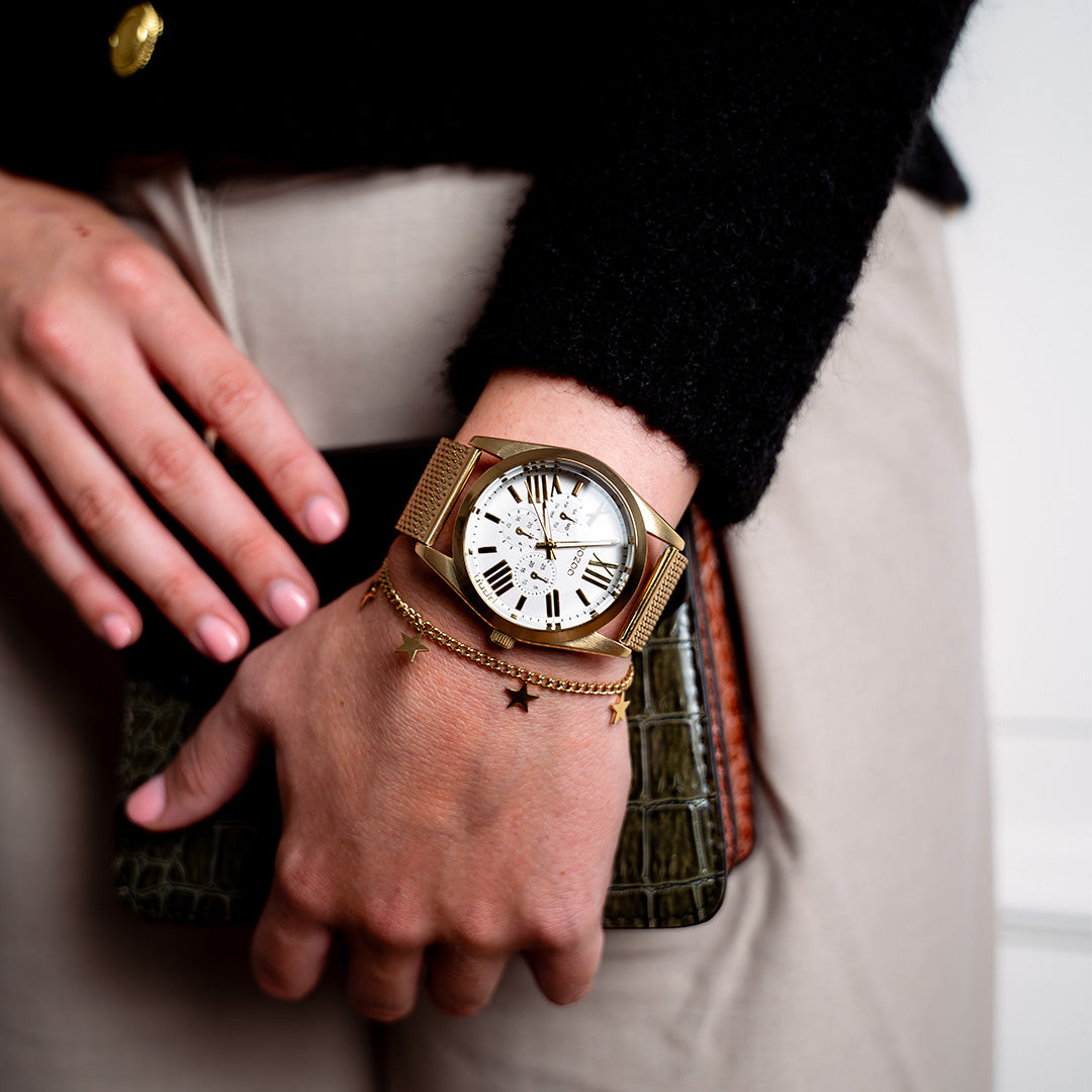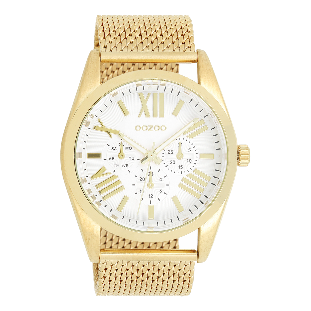 Gold coloured OOZOO watch with metal mesh bracelet - C9642