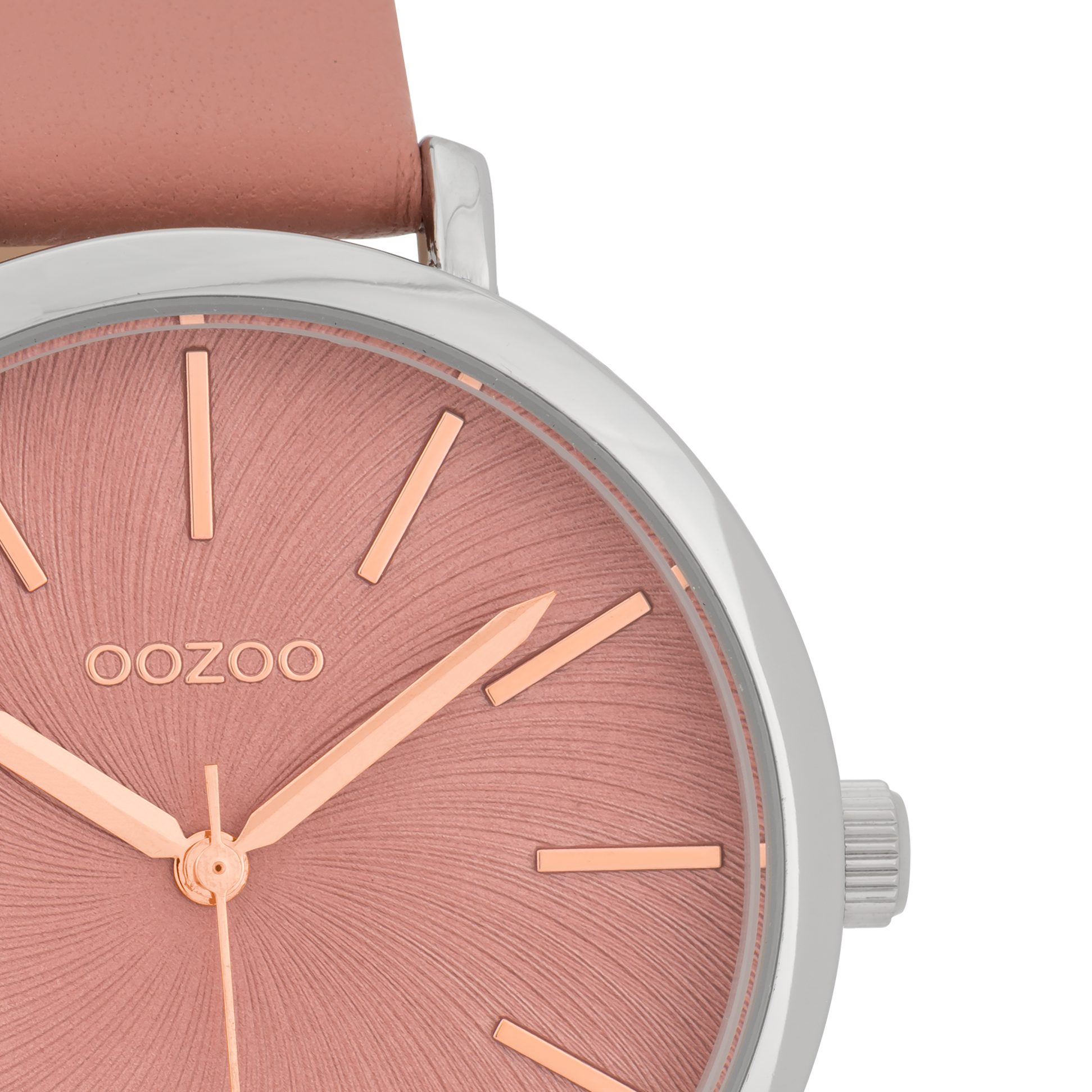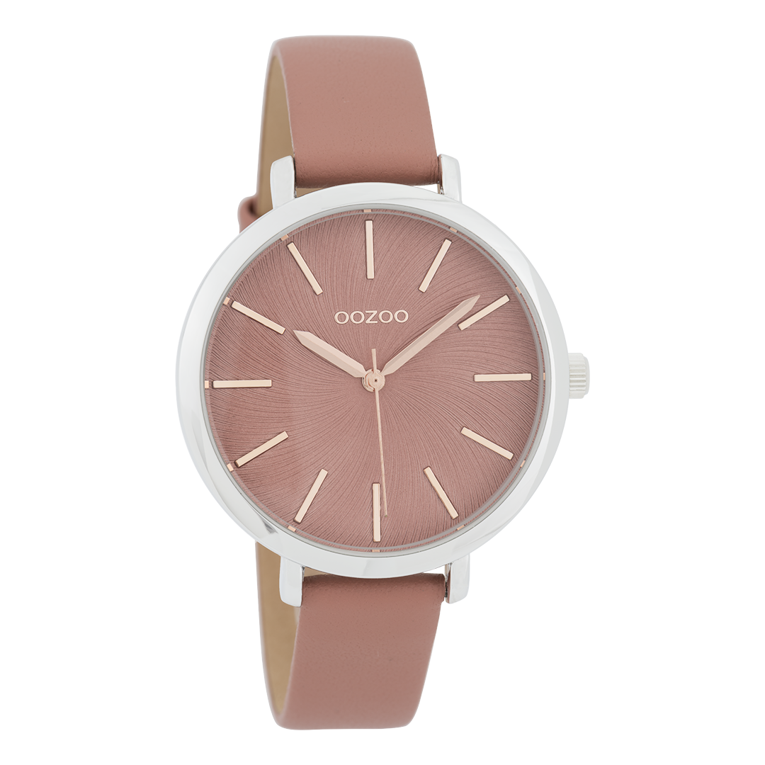 Silver coloured OOZOO watch with warm pink leather strap - C9696