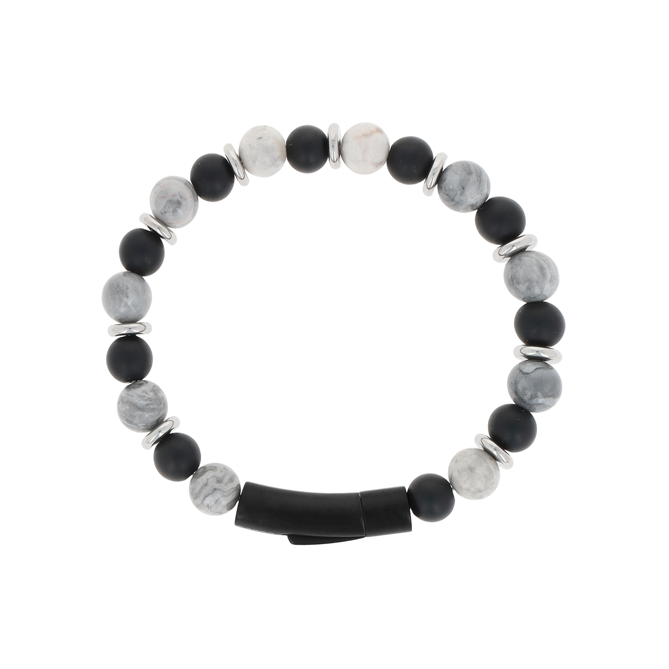 OOZOO Jewellery is a great addition to your personal accessories collection. This beautiful black onyx and map stone stone bracelet is the perfect accessory to complete your outfit. The stone bracelet is 21cm long and has a strong stainless steel clasp. Carefully selected materials come together in this collection to create a timeless and distinctive design. This product (SB-1068-210) is covered by a 3 months warranty (see section 3 of our Refund, shipping & warranty policy).