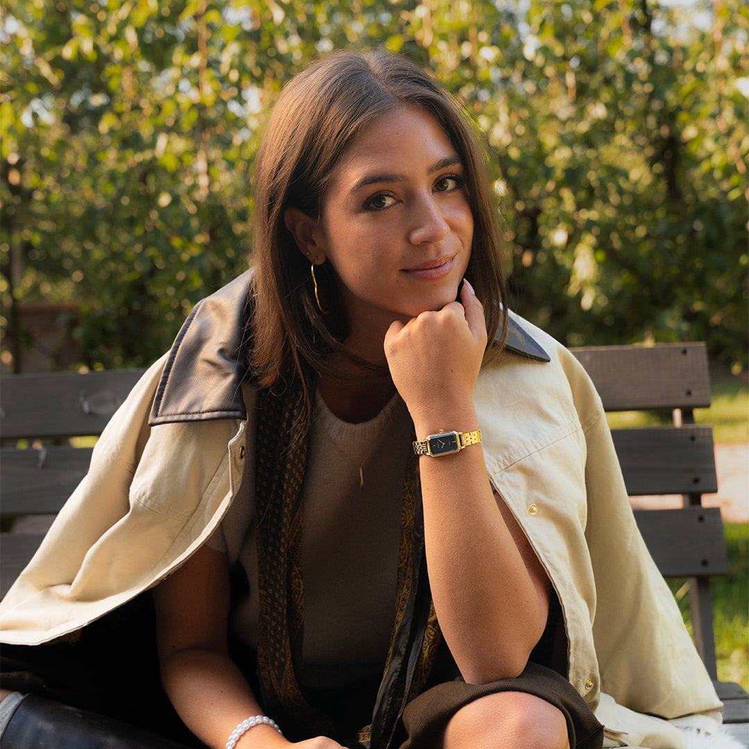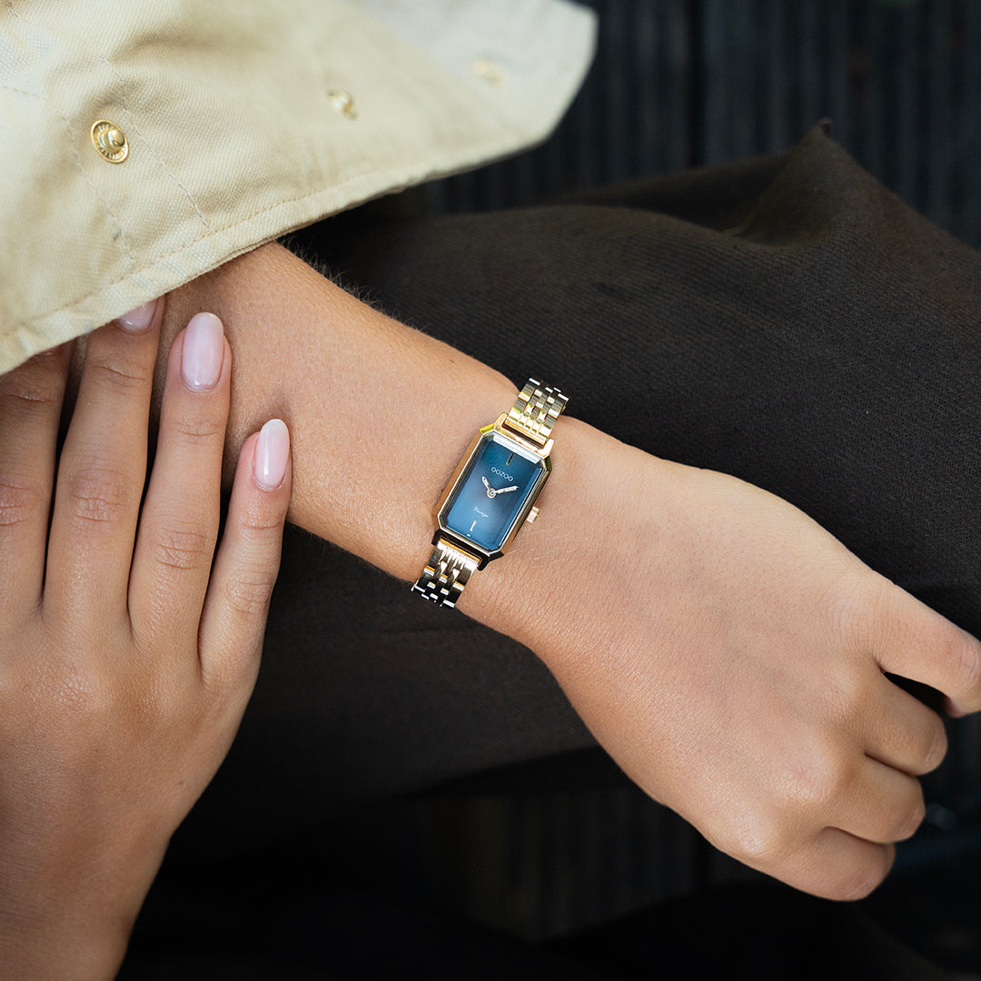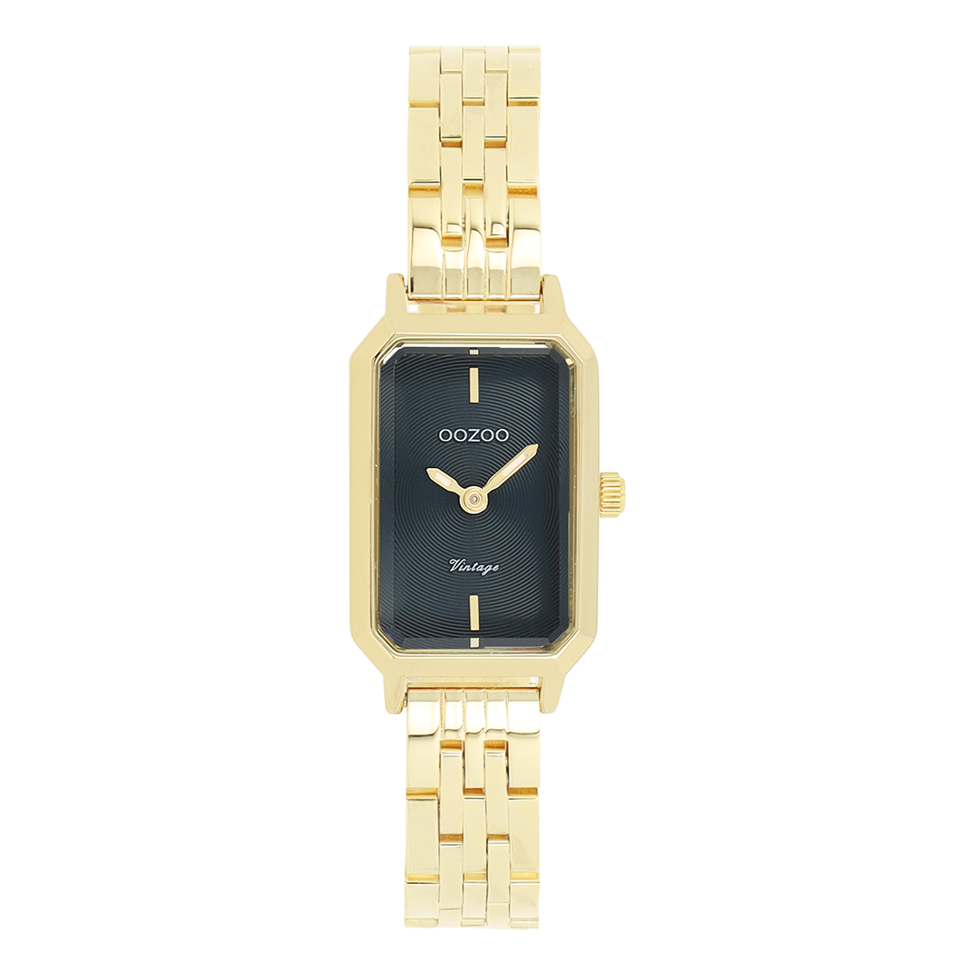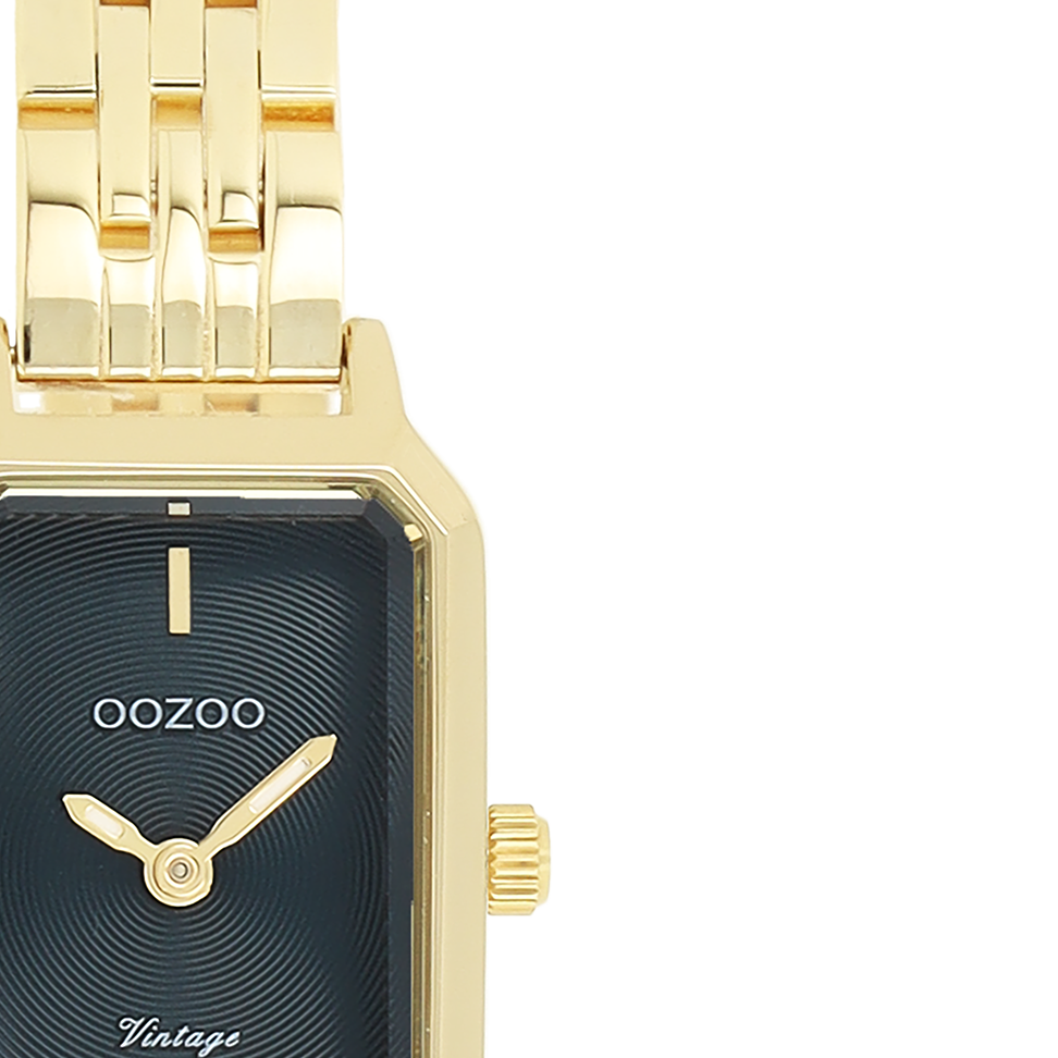 The classic look stays key in this trendy series and therefore, this rectangle OOZOO vintage design with a playful wink is the season must-have! This ladies watch is the perfect combination of fashion and comfort with its 22x19 mm gold coloured metal watch case and black sunray dial. The shiny gold coloured stainless steel bracelet makes this watch a trendy accessory, which you can wear every day. The dial has gold coloured stripes digits and matching hands. The C20429 adds the sparkle to your outfit. The mineral glass lays in a mm slim metal watch case with IP-plating. This design has a stainless steel backplate and is nickel safe. This watch has a 2ATM Japanese movement and is covered by a 2 year warranty (see section 3 of our Refund, shipping & warranty policy).