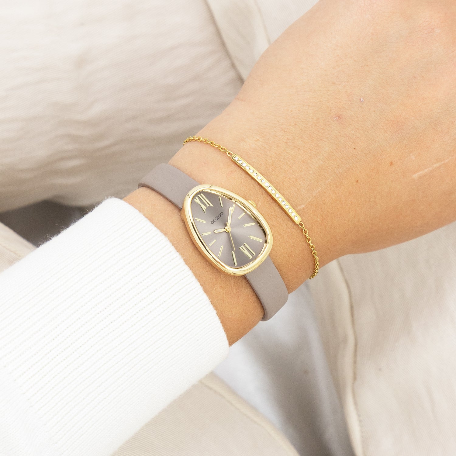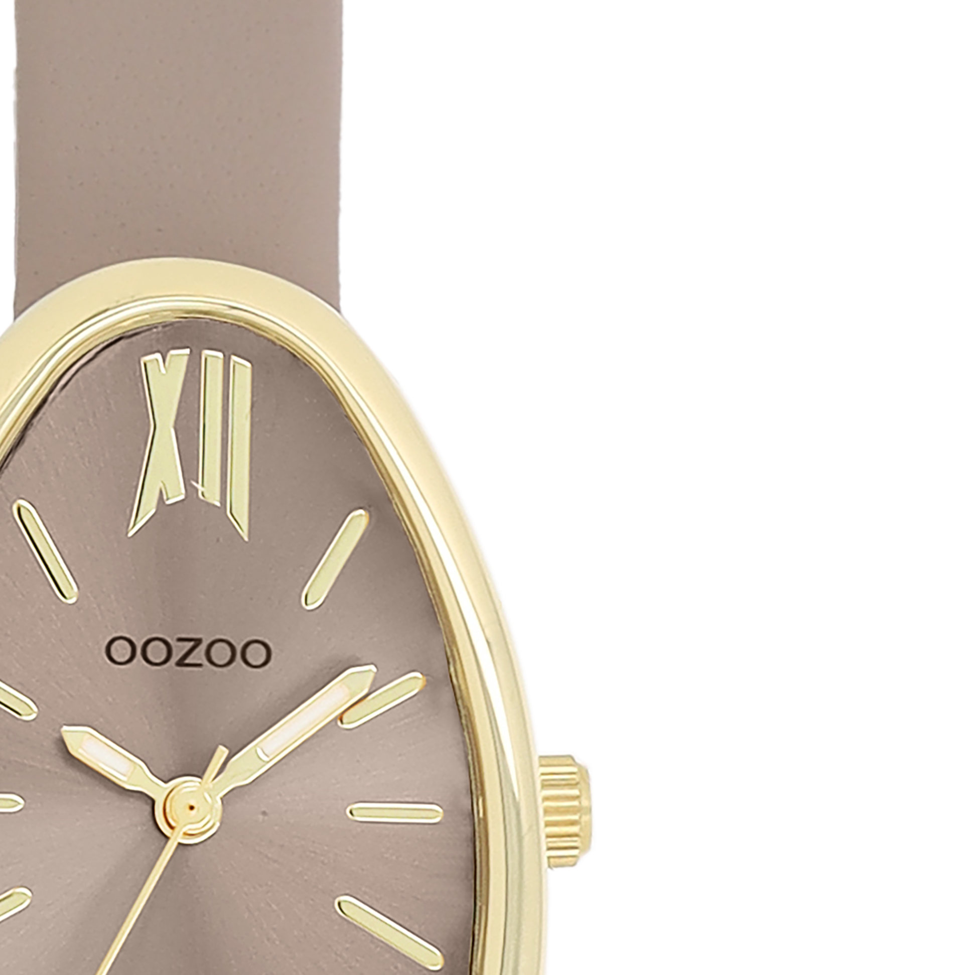 Gold coloured OOZOO watch with taupe leather strap - C11637