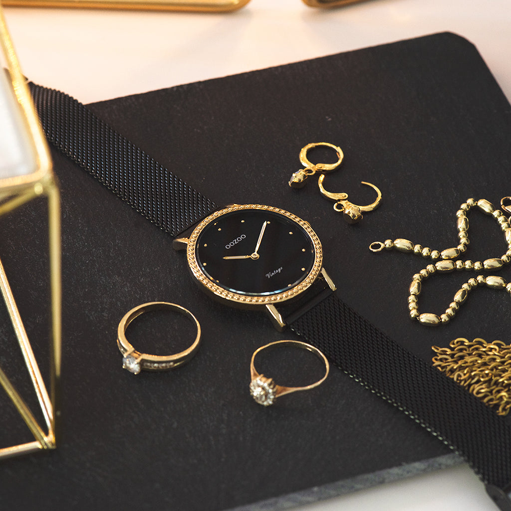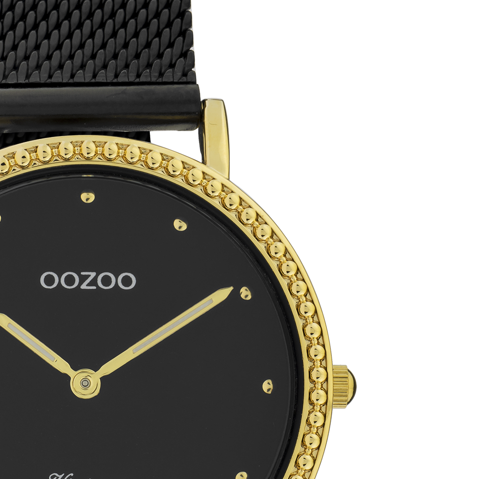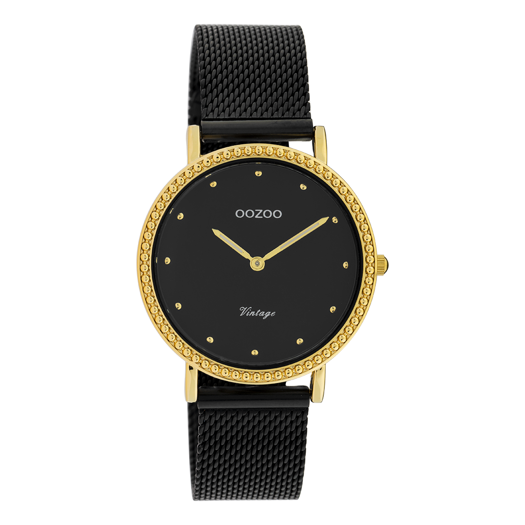 OOZOO Montre en couleur or avec bracelet en mesh en noir - C20058